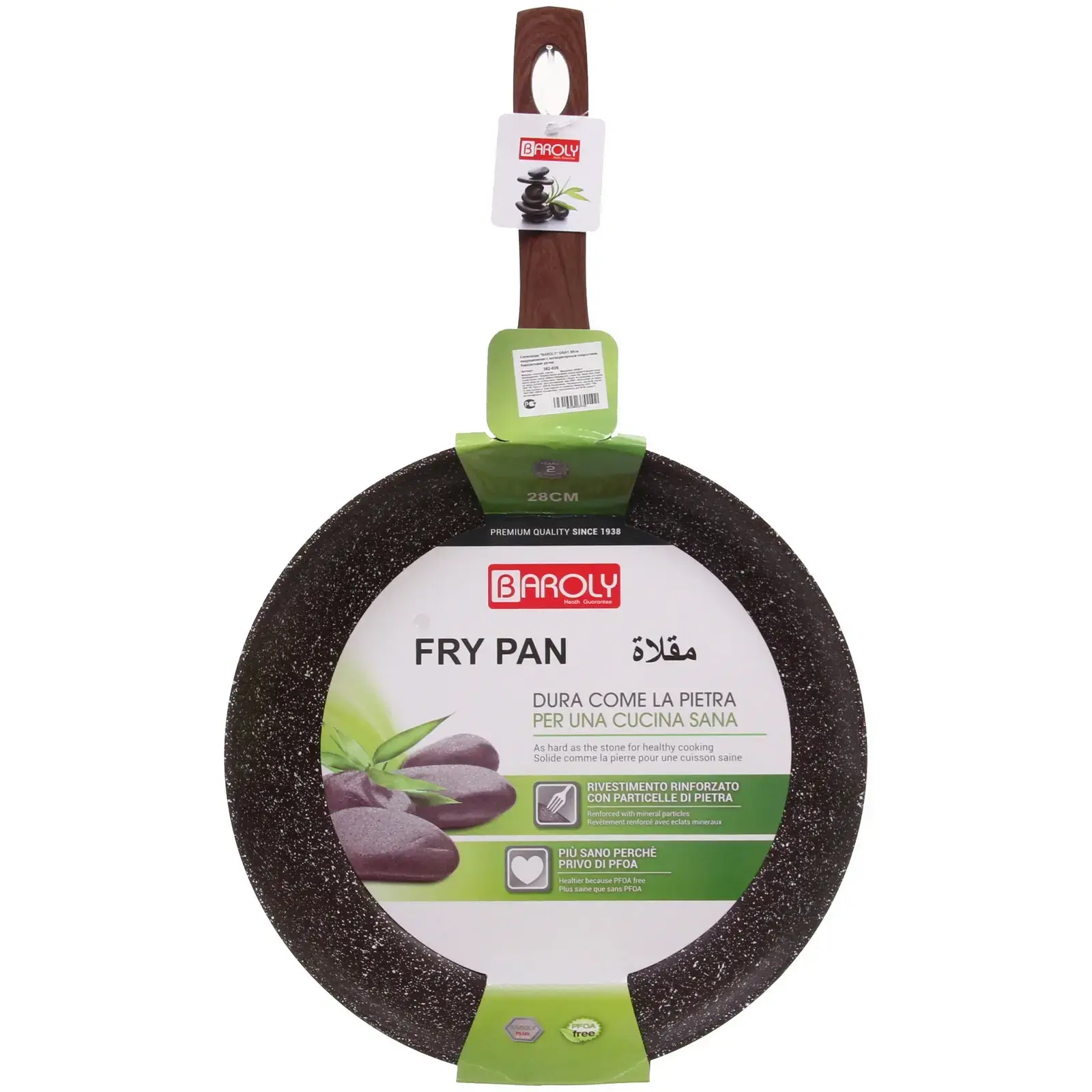 Сковорода выполнена из алюминия, что обеспечивает равномерное распределение тепла и быстрое нагревание. Диаметр 28 см позволяет готовить порции для всей семьи. Цвет сковороды — темно-коричневый с белыми вкраплениями, что придаёт ей стильный и современный вид. Не упустите возможность сделать вашу кухню более функциональной и красивой с помощью сковороды «BAROLY» GRAY!