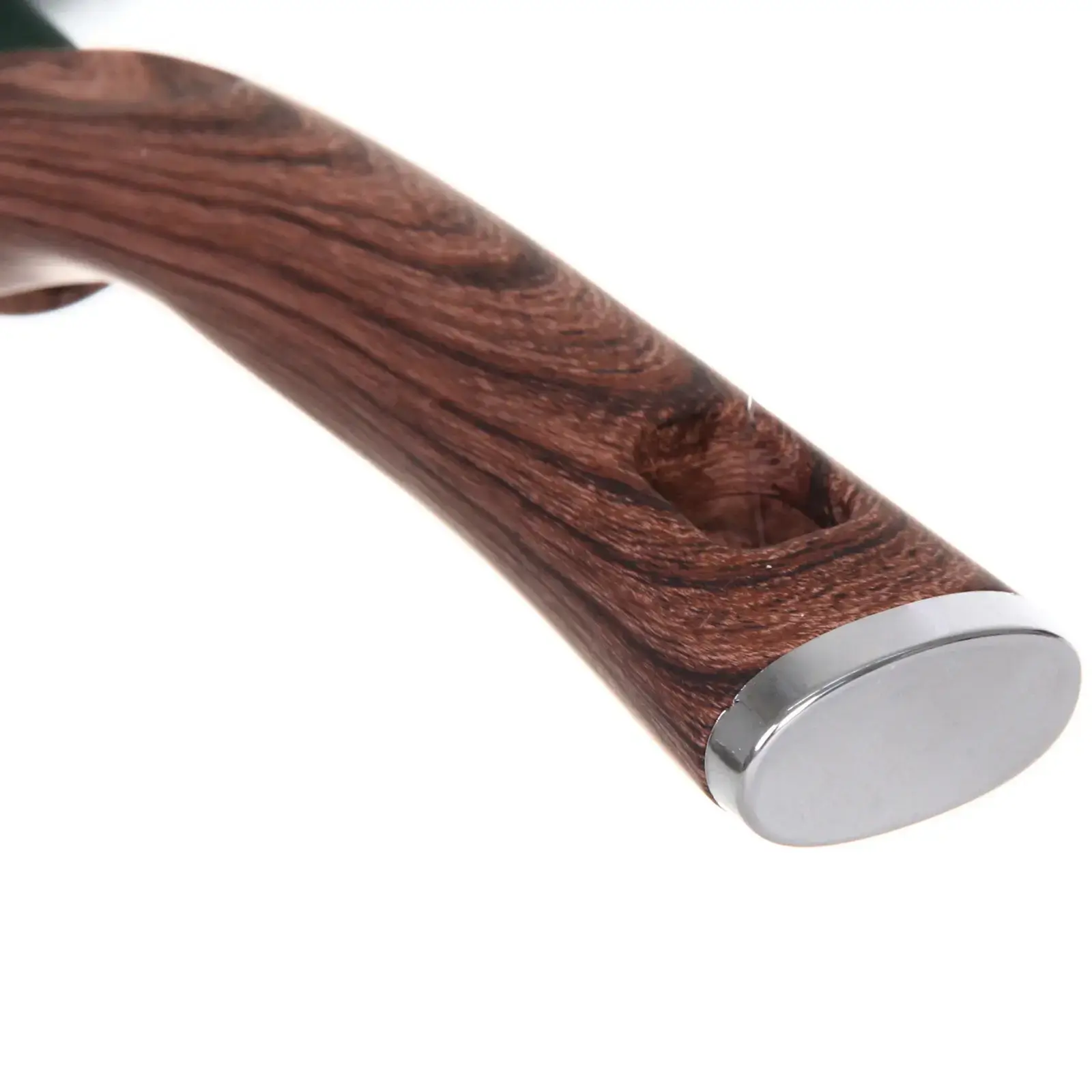 Сковорода идеально подходит для жарки, тушения и запекания. Благодаря диаметру 22 см, она подходит для приготовления порций на 2-3 человека. Эргономичная бакелитовая ручка, имитирующая дерево, обеспечивает надежный захват и не нагревается во время готовки, что делает процесс приготовления комфортным и безопасным.