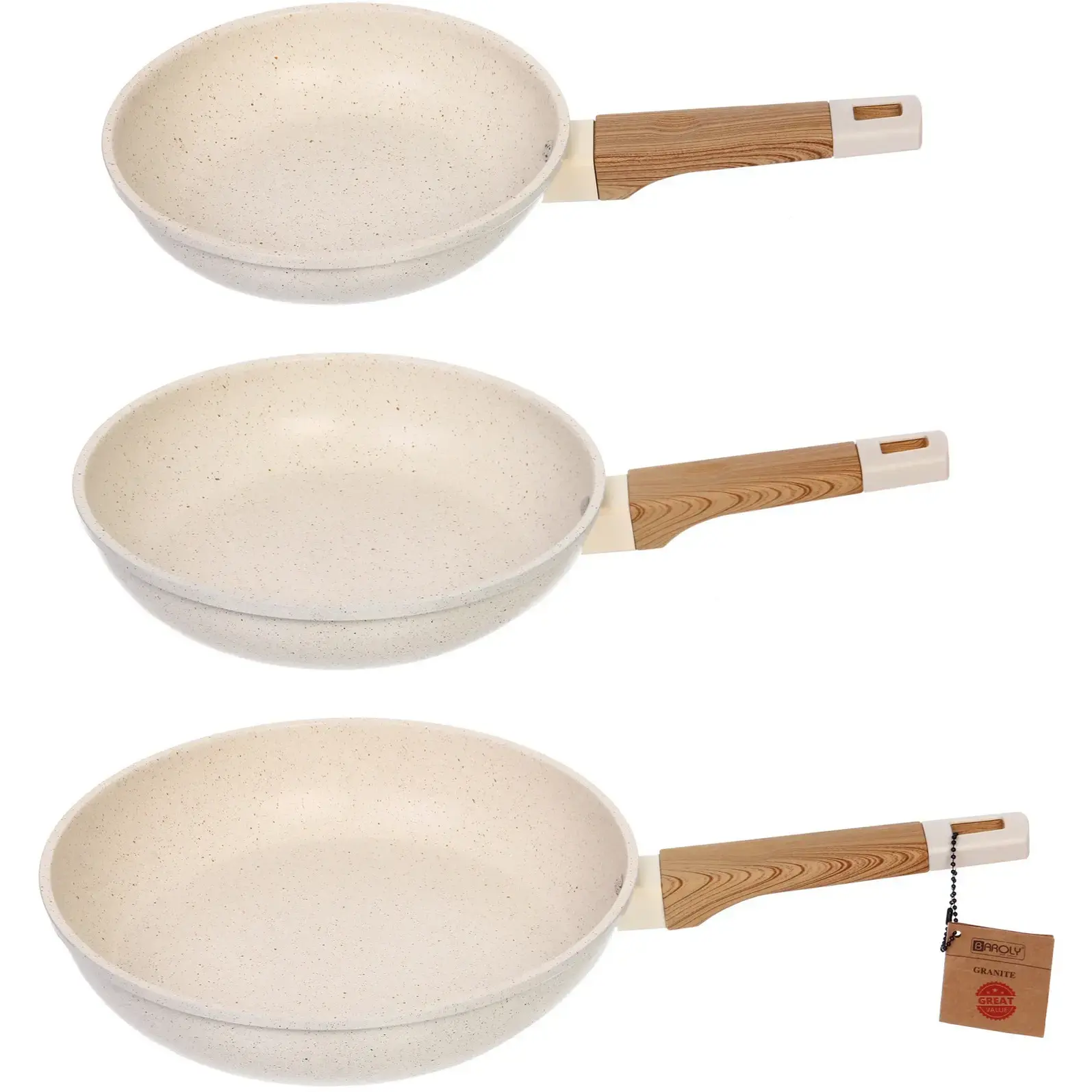 Сковорода "BAROLY" набор 3шт (20/24/28см), алюминий, индукция, бакелит