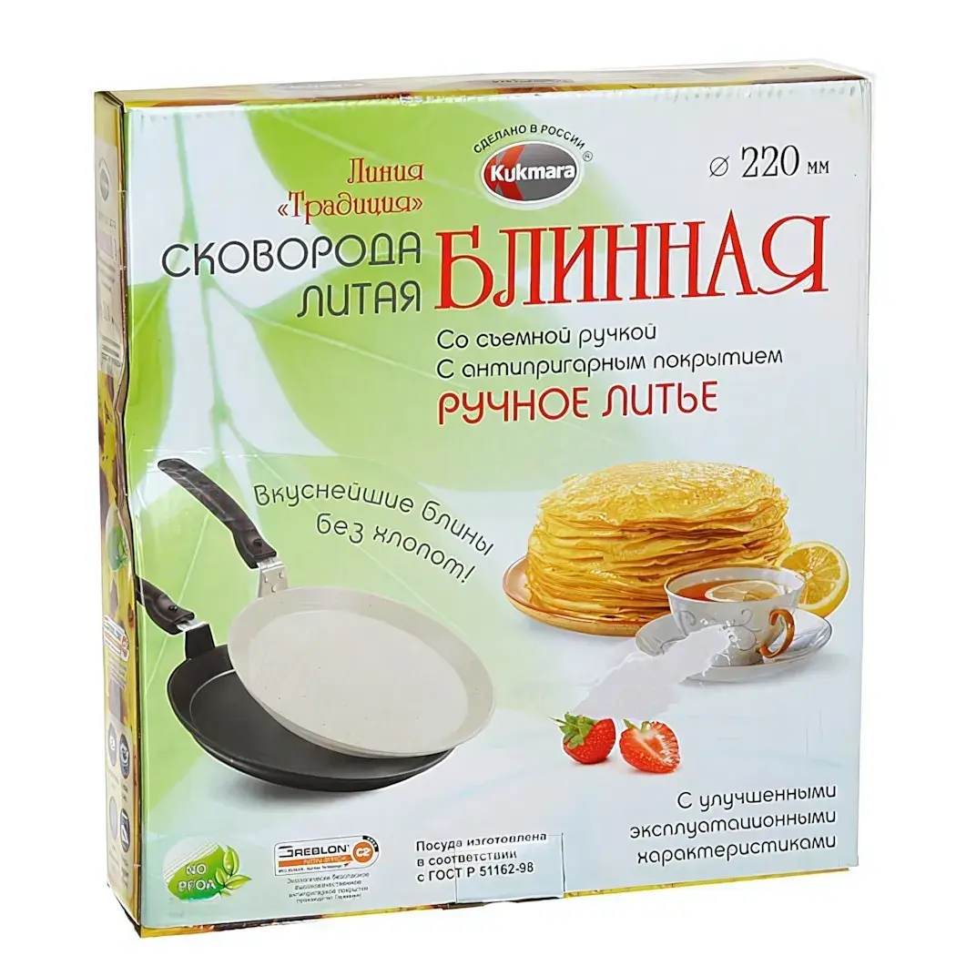 Приготовление вкуснейших блинов стало проще с блинной сковородой диаметром 22 см из литого алюминия. Эта сковорода с антипригарным покрытием и съемной ручкой обеспечивает комфорт и удобство в использовании, позволяя вам наслаждаться процессом готовки без лишних хлопот.