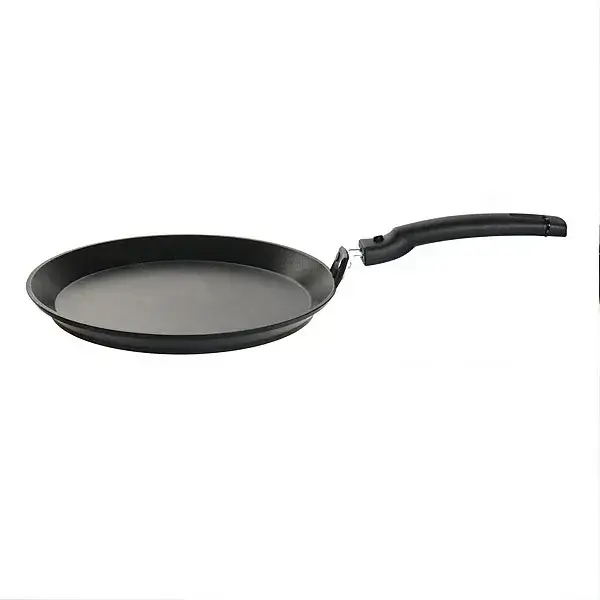 Сковорода идеально подходит для приготовления блинов, оладий и других блюд. Низкие борта позволяют легко разливать тесто и аккуратно переворачивать готовые изделия. Съемная ручка делает хранение сковороды более удобным, а также позволяет использовать ее в духовке.