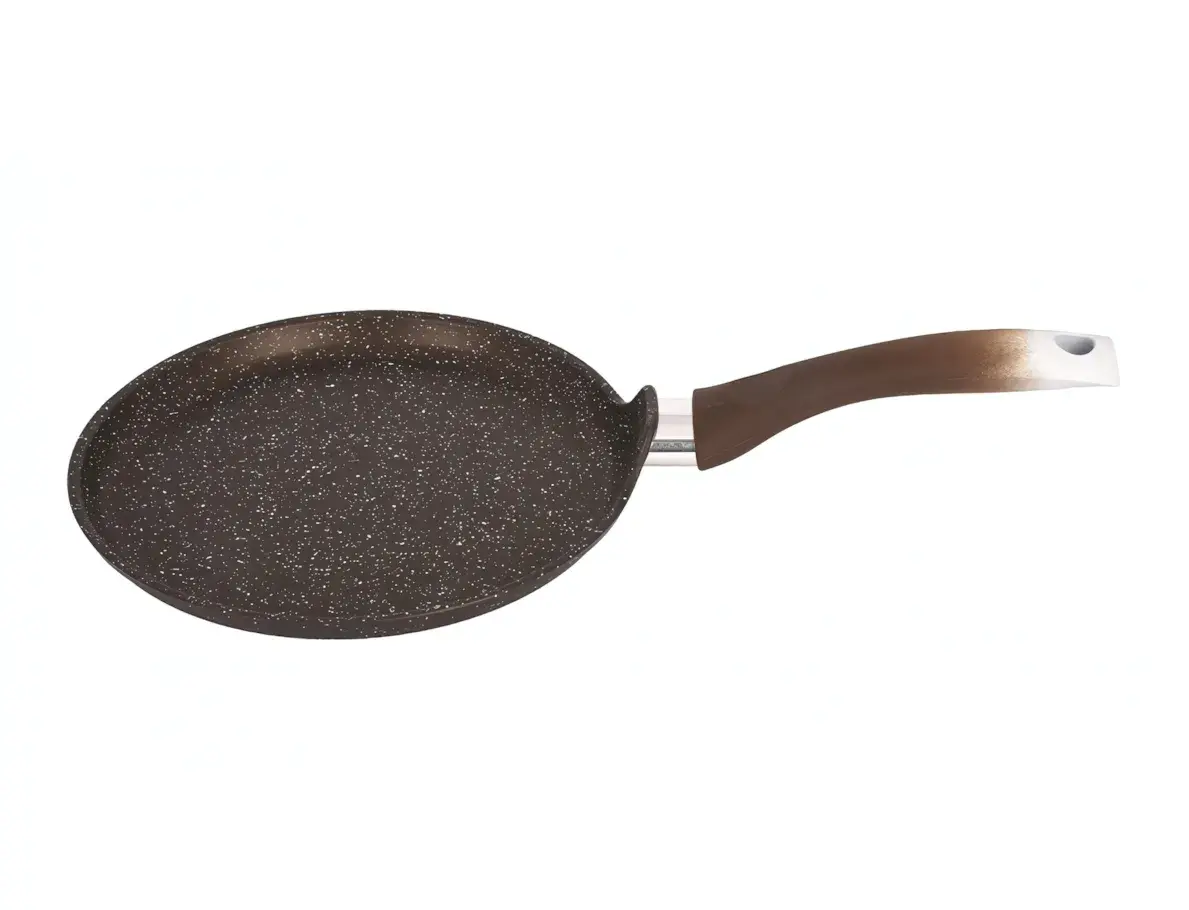 Приготовление блинов станет настоящим удовольствием с нашей блинной сковородой. Она выполнена из литого алюминия и имеет антипригарное покрытие, что обеспечивает легкость в использовании и уходе. Благодаря стильному кофейному мраморному дизайну, сковорода не только функциональна, но и станет украшением вашей кухни.