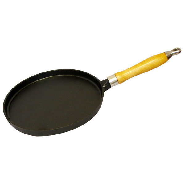 Сковорода подходит для всех типов плит, включая индукционные. Благодаря своей круглой форме и размеру 24 см, она идеально подходит для приготовления блинов, оладий и других блюд. Деревянная ручка обеспечивает надежный захват и не нагревается во время готовки, что делает процесс безопасным и комфортным.