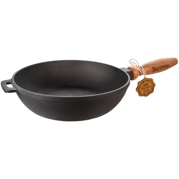 Сковорода чугунная литая с деревянной ручкой