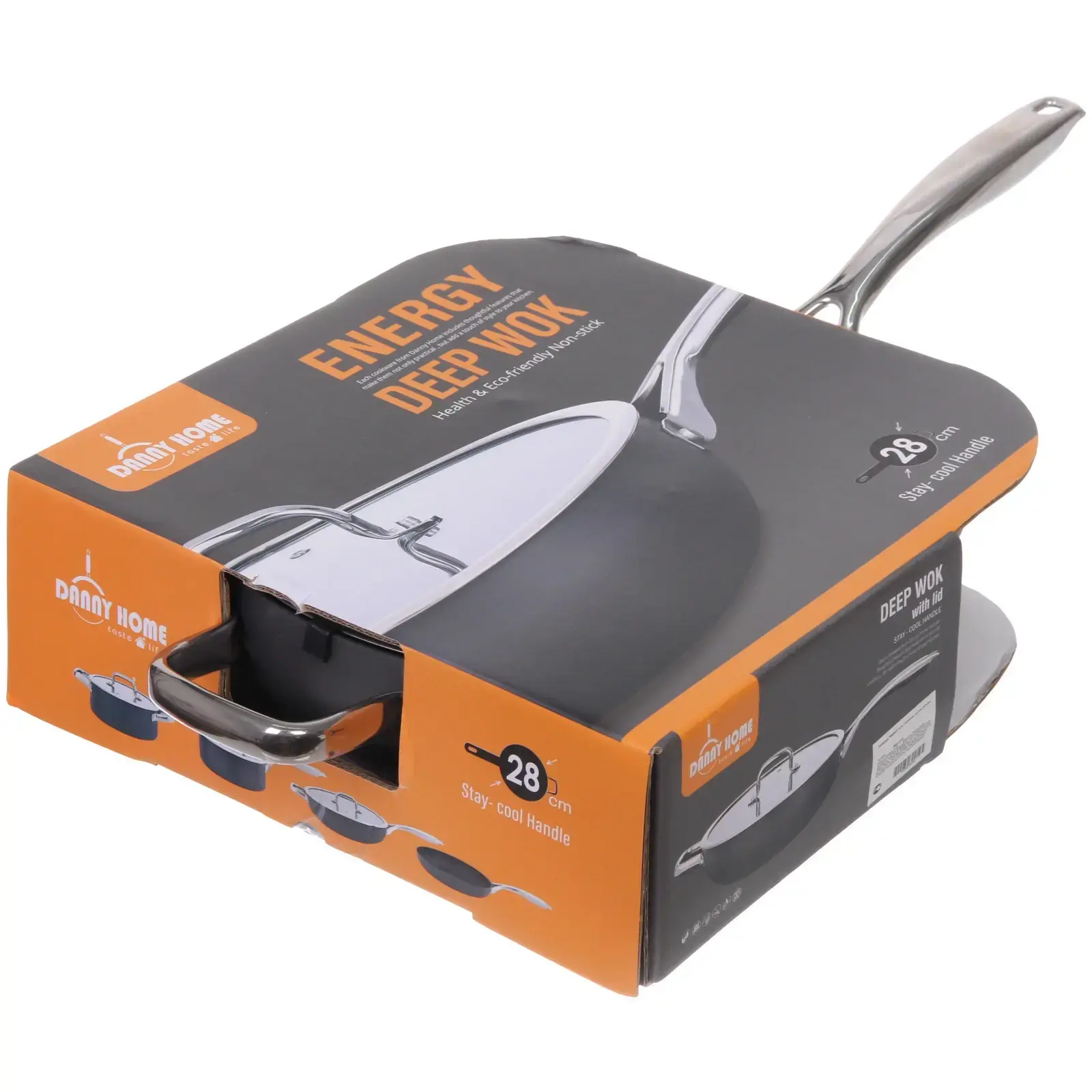 Размеры сковороды составляют 28 см в диаметре и 8,5 см в высоту, что делает её идеальной для приготовления порций на 2-4 человека. Стеклянная крышка с металлическим ободком и ручкой обеспечивает удобство в использовании и позволяет следить за процессом готовки. Сковорода «ENERGY» — это не просто кухонная посуда, это ваш надежный партнер в кулинарных экспериментах!