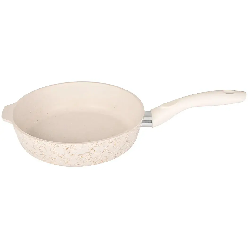 Сковорода Kukmara серии «Грация» сочетает изысканный дизайн и профессиональные характеристики. Золотой декор и эргономичная ручка создают атмосферу роскоши, а инновационное покрытие гарантирует безупречный результат при каждом использовании.