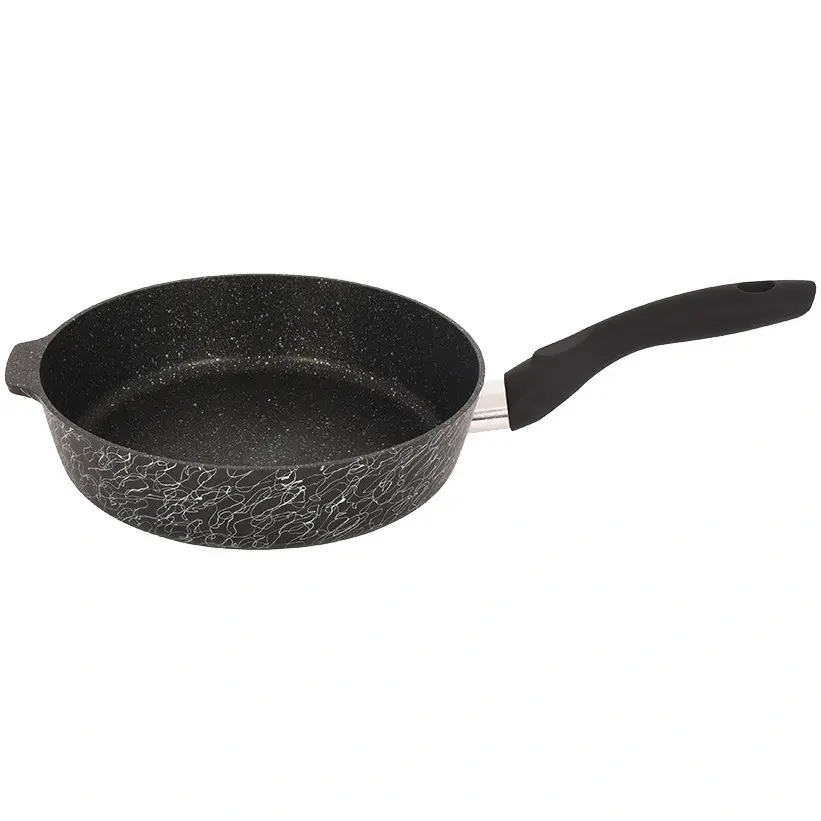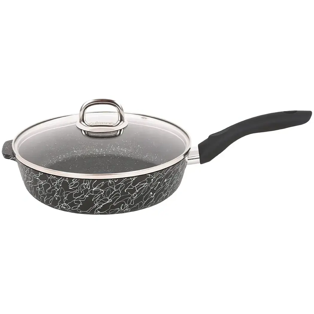 Сковорода антипригарная 24см «Грация» с крышкой, литой алюминий, глубокое дно, черный/серебро