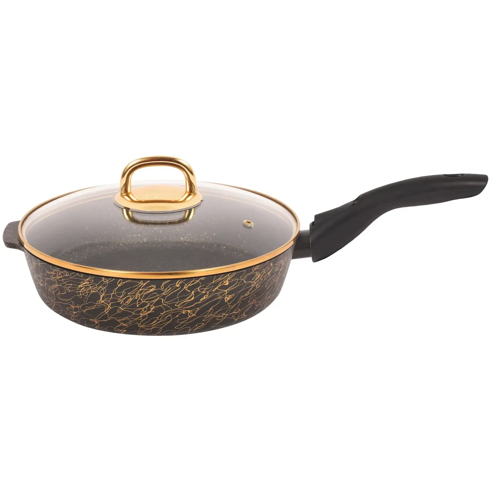 Сковорода глубокая 24 см с антипригарным покрытием и стеклянной крышкой «Грация» — это не просто посуда, а стильный элемент вашей кухни, который сочетает в себе функциональность и элегантность. Благодаря уникальному дизайну с золотыми узорами, она станет настоящим украшением вашего стола и поможет вам готовить с удовольствием.