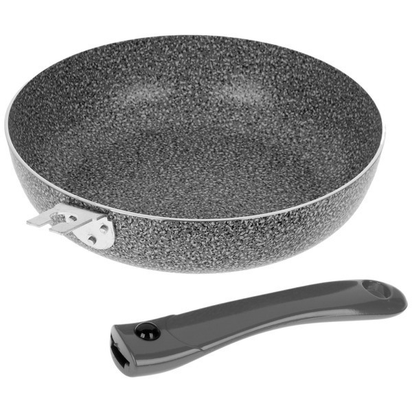 Сковорода подходит для приготовления различных блюд: от жарки до тушения. Съемная ручка из бакелита обеспечивает удобство хранения и использования, а также позволяет легко мыть посуду. Она идеально подходит как для опытных кулинаров, так и для начинающих, которые хотят готовить быстро и вкусно.