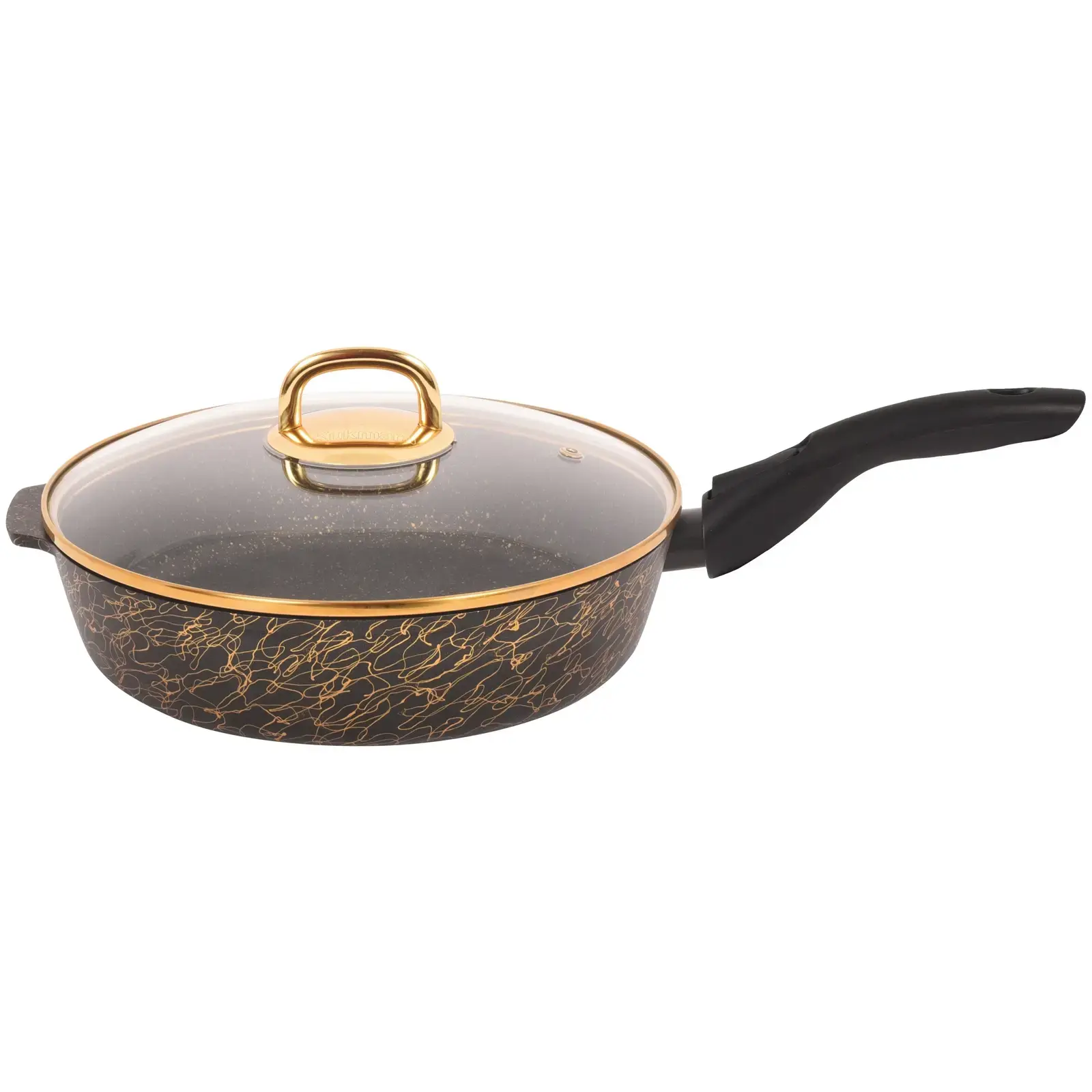 Сковорода глубокая «Грация» 26см со съемной ручкой, стекл. крышкой, литой алюминий, черный/золото