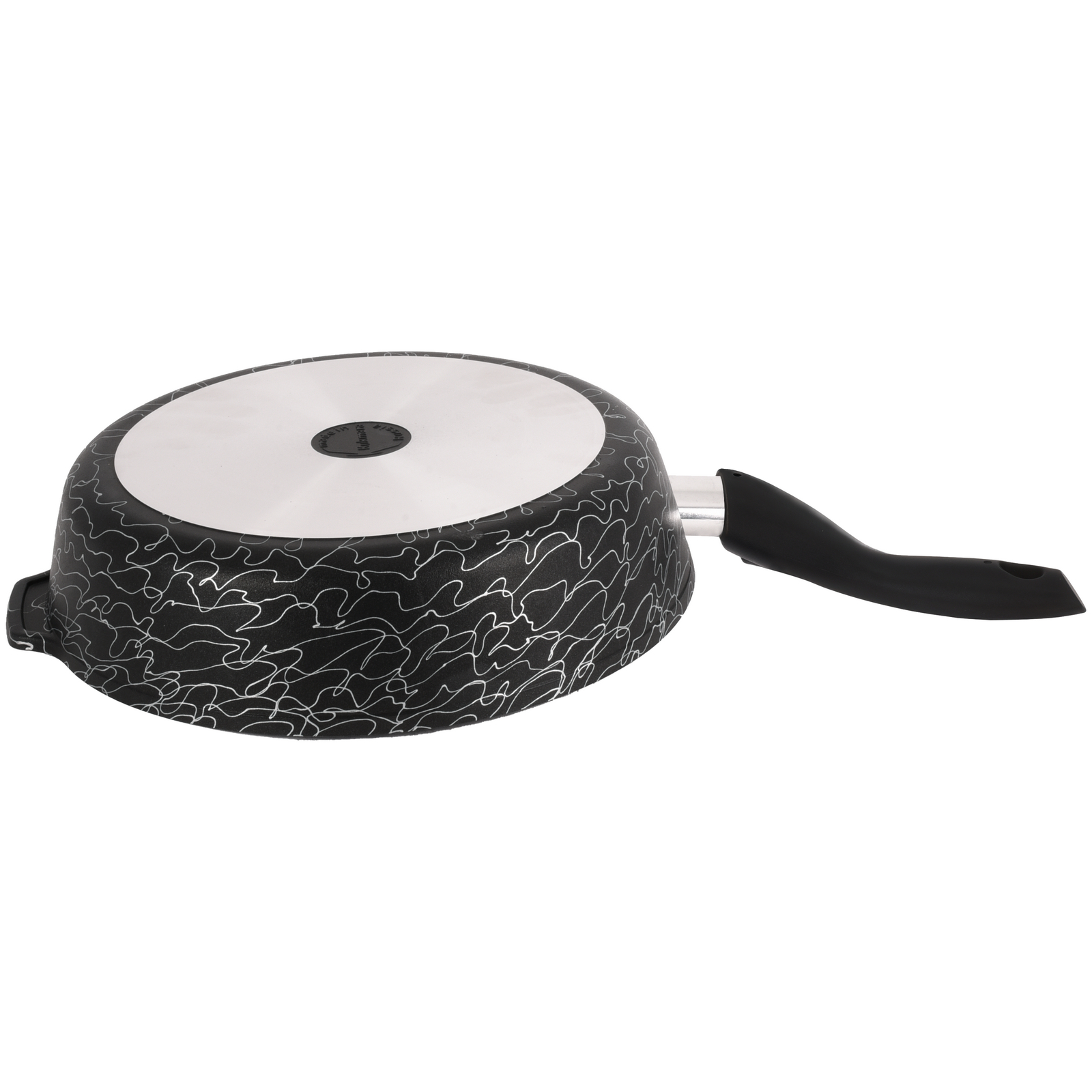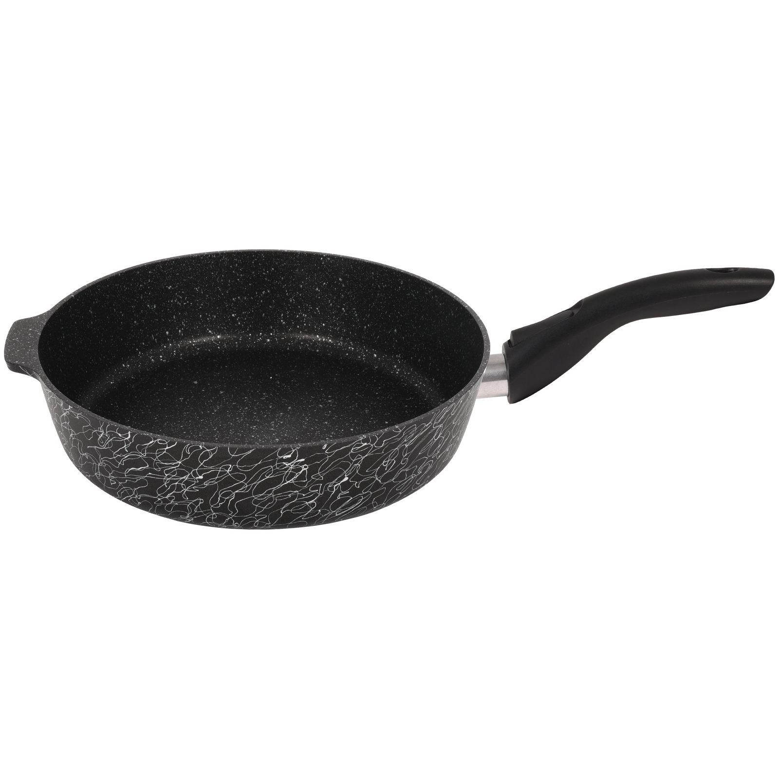 Сковорода выполнена из литого алюминия, что обеспечивает равномерное распределение тепла и долговечность. Размеры 28 см делают её идеальной для различных блюд. Стеклянная крышка устойчива к высоким температурам и позволяет контролировать процесс приготовления без необходимости открывать сковороду.