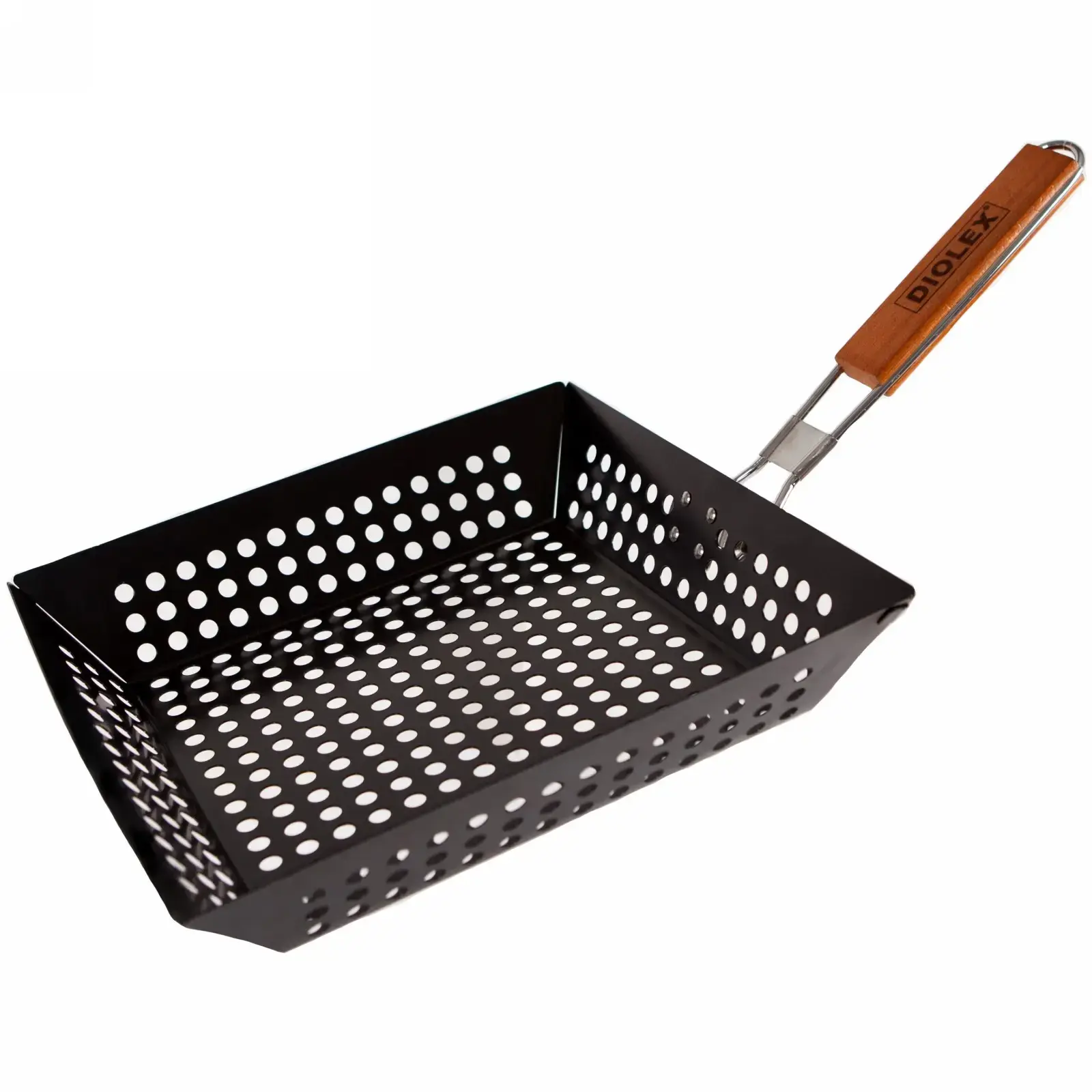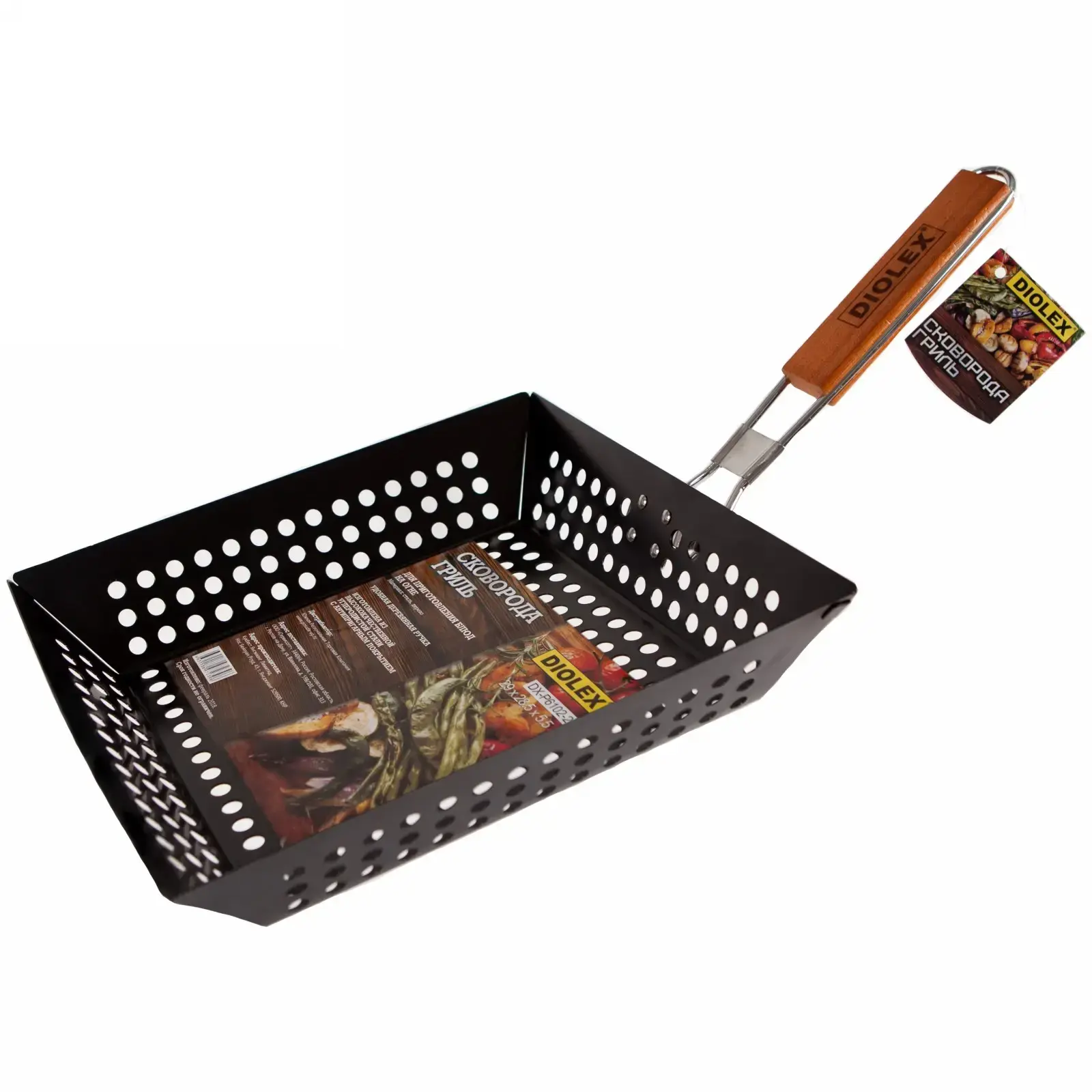 Сковорода-гриль Diolex 29х28,5 см, антипригарное покрытие, складная деревянная ручка