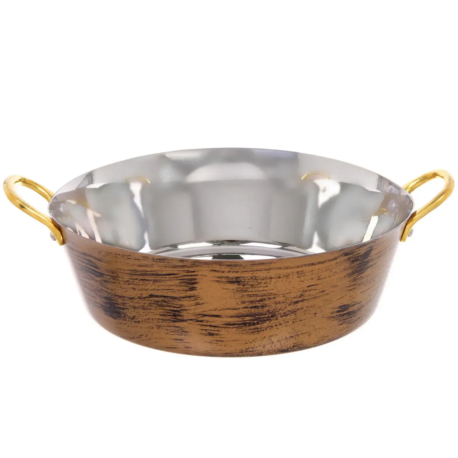 Сковорода из нержавейки 20см, ручки из латуни, цвет Антик, объем 1,5л