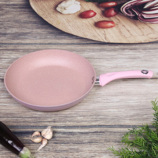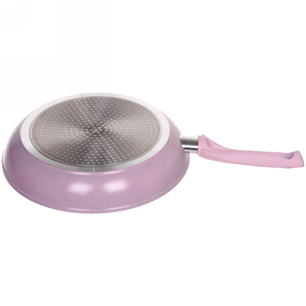 Сковорода выполнена из алюминия, что обеспечивает равномерное распределение тепла и быстрое приготовление пищи. Ее размеры (28 см в диаметре) делают ее идеальной для приготовления порций на 2-3 человека. Нежно-розовый цвет с мелкими белыми вкраплениями добавляет изюминку в ваш кухонный арсенал.