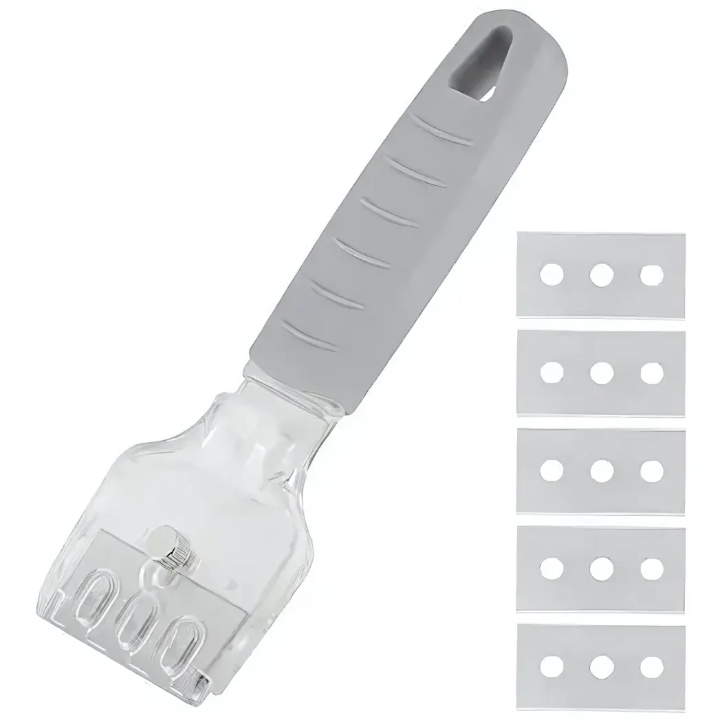 Скребок имеет прямоугольную форму с закруглёнными краями, что позволяет легко и аккуратно обрабатывать различные поверхности. Ручка из ТПР (термопластичный резин) обеспечивает надежный захват, а прозрачная лопатка с выемками делает процесс работы более эффективным. Этот инструмент подходит как для профессиональных поваров, так и для домашних кулинаров.