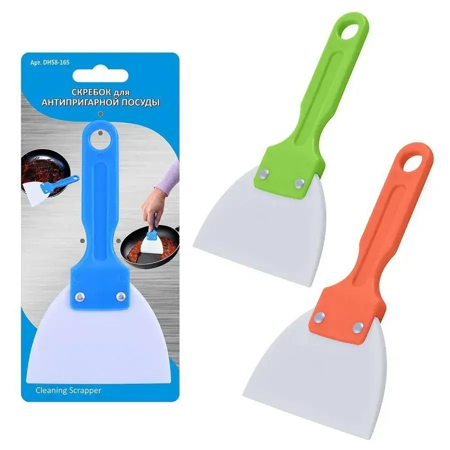 Скребок для антипригарной посуды, комплект из 2 штук, зеленый и оранжевый, пластиковая ручка
