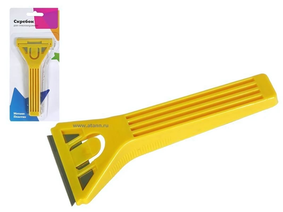 Скребок для чистки стеклокерамики 09980, ярко-жёлтый, пластик и металл, удобная рукоятка, широкое основание