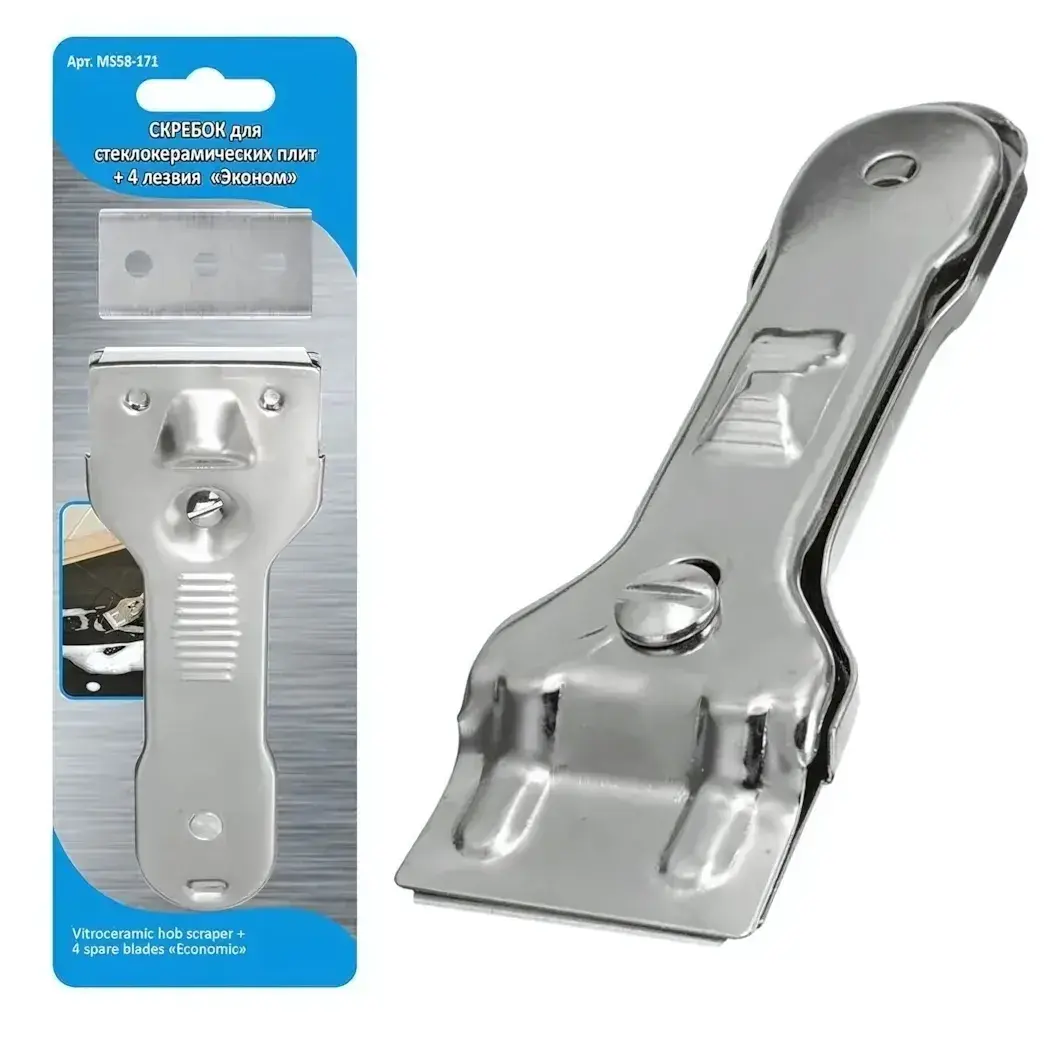 Скребок для стеклокерамики "Эконом" с 4 лезвиями, металлический