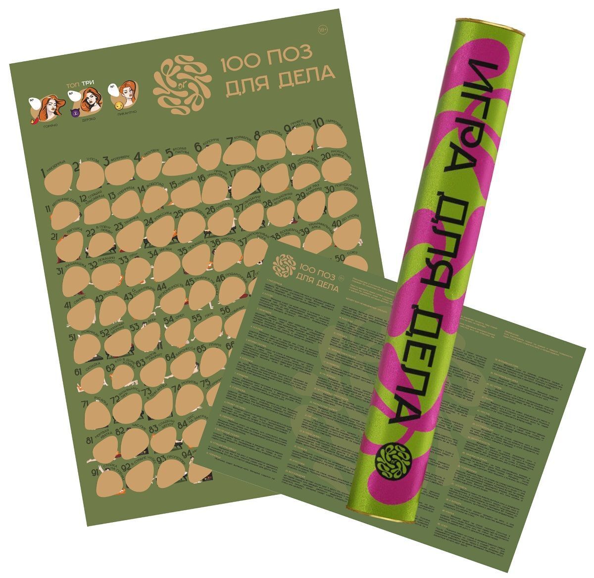 Скретч-плакат '100 поз для дела', А2, в тубусе, эротическая игра для взрослых