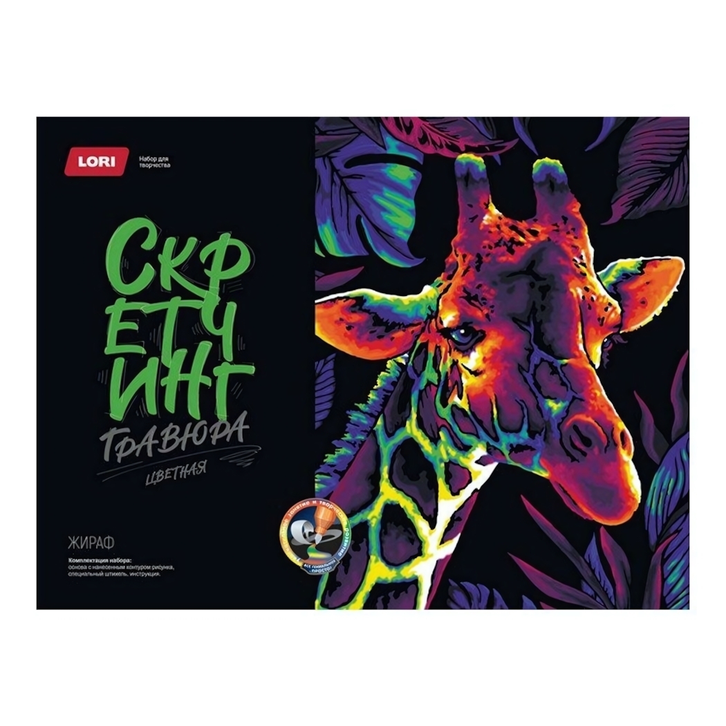 Позвольте ребенку создать собственное произведение искусства с гравюрой "Неоновые животные. Жираф". Яркие неоновые цвета и увлекательный процесс работы со штихелем подарят незабываемые моменты радости.