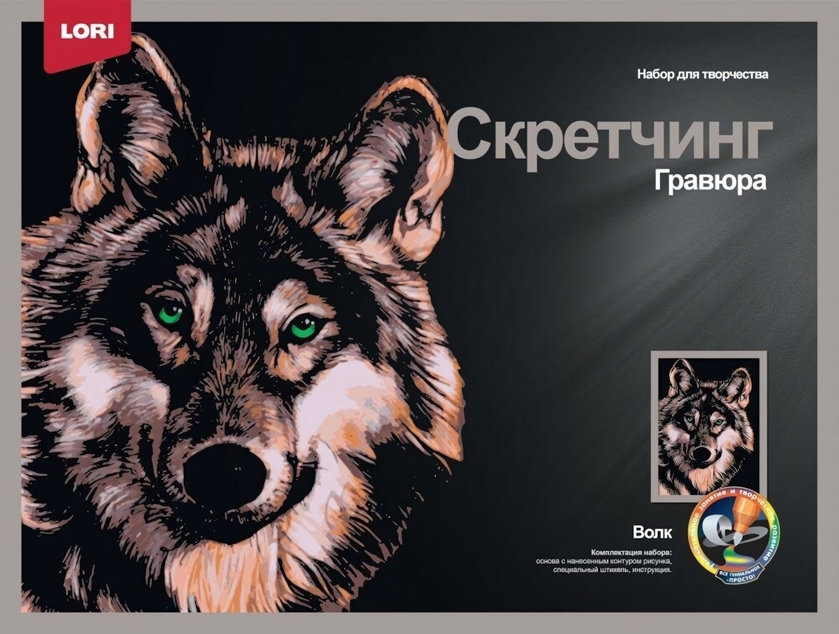 Скретчинг 30х40см "Красивый волк", набор для творчества, от 3 лет