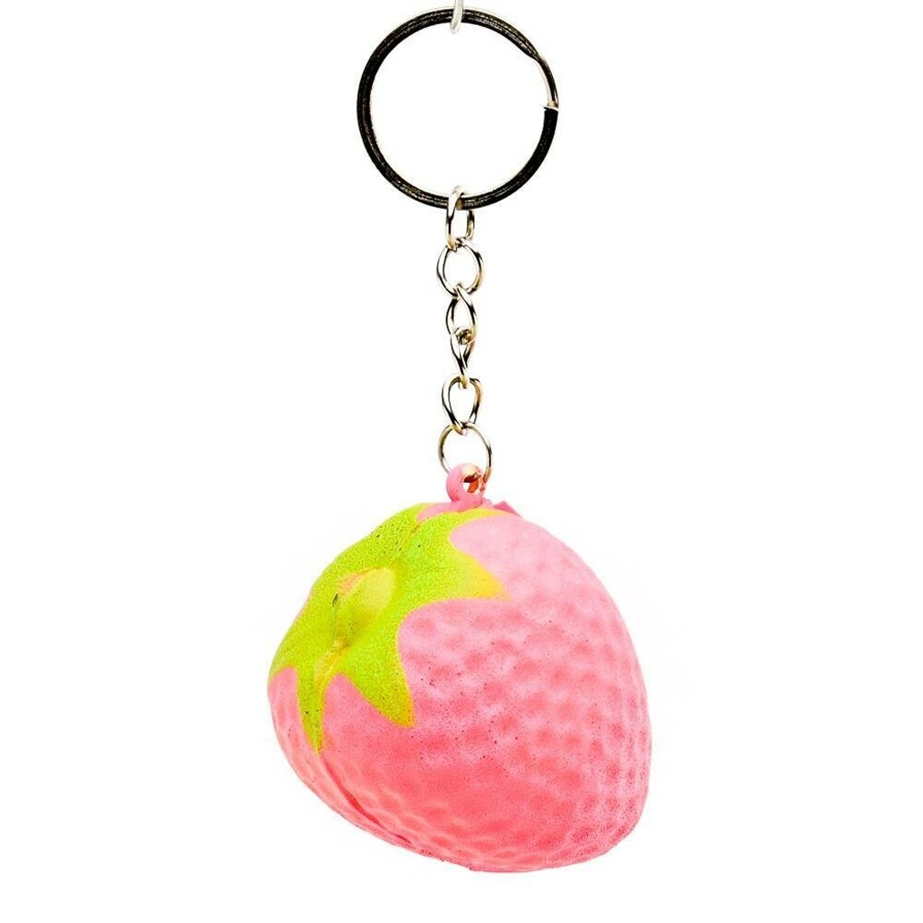 Яркие цвета (розовый с зеленым) и реалистичная текстура создают эффект свежей клубники. Игрушка не только выполняет функцию брелока, но и служит эффективным антистрессовым средством.