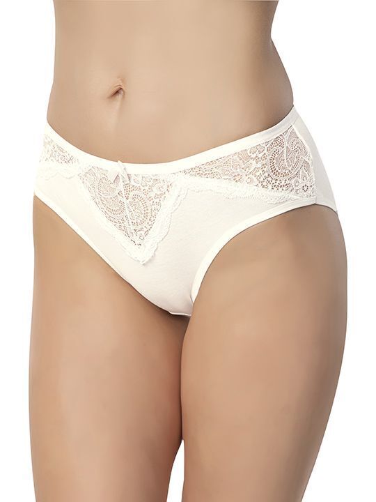 Слипы женские с кружевом, высокая посадка, кремовый, хлопок 95%, размер XXL