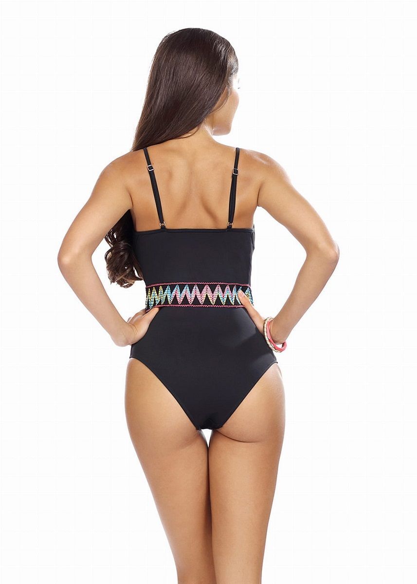 Почувствуйте комфорт и уверенность в стильном слитном купальнике с ярким акцентом на талии. Широкая эластичная резинка с цветным орнаментом не только украшает, но и подчеркивает стройность силуэта.