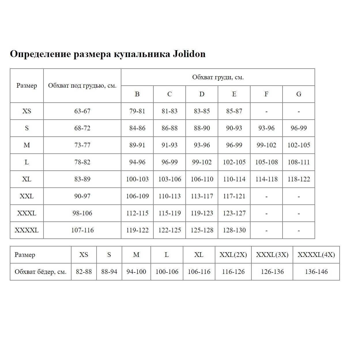Используйте фирменную размерную сетку Jolidon: параметры XXL соответствуют обхвату под грудью 98-102 см и бедер 116-120 см. Для точного определения размера ориентируйтесь на таблицу замеров в галерее товара.