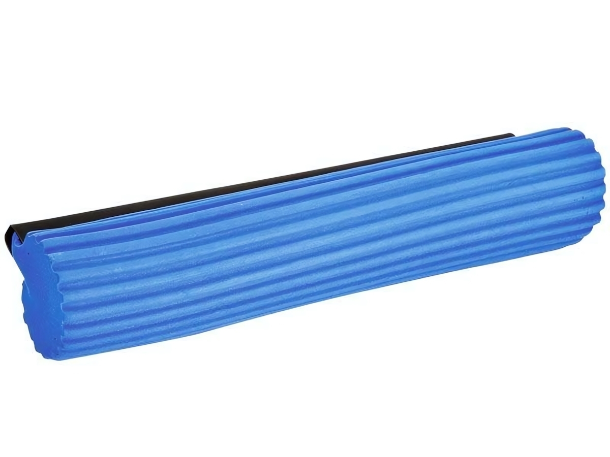 Сменный блок изготовлен из прочного полимерного ПВА с продольными ребрами, которые усиливают чистящую способность за счет увеличенной площади контакта. Плоское основание обеспечивает надежное крепление к ручке швабры, а закругленные края помогают аккуратно проходить углы и края мебели без повреждений.