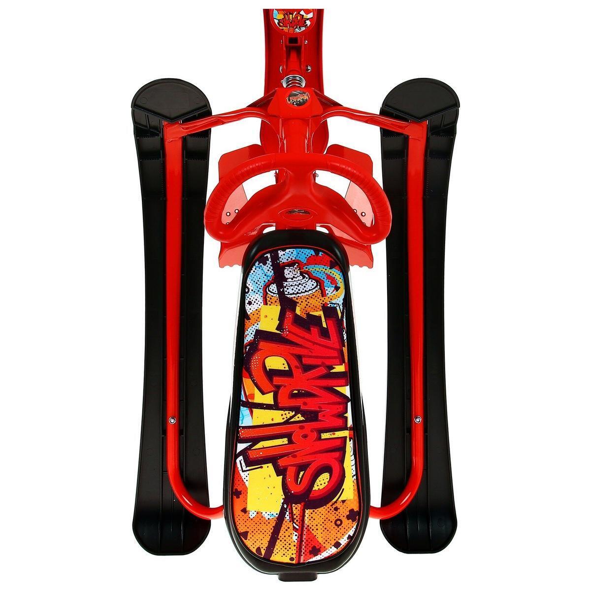 Снегокат имеет следующие размеры: ширина сиденья — 21 см, длина сиденья — 52 см, высота по рулю — 45 см, высота по сиденью — 27 см. Его масса составляет 6,8 кг, что делает его легким и удобным для транспортировки. Цвет снегоката — яркий красный, что добавляет ему привлекательности и заметности на снегу.
