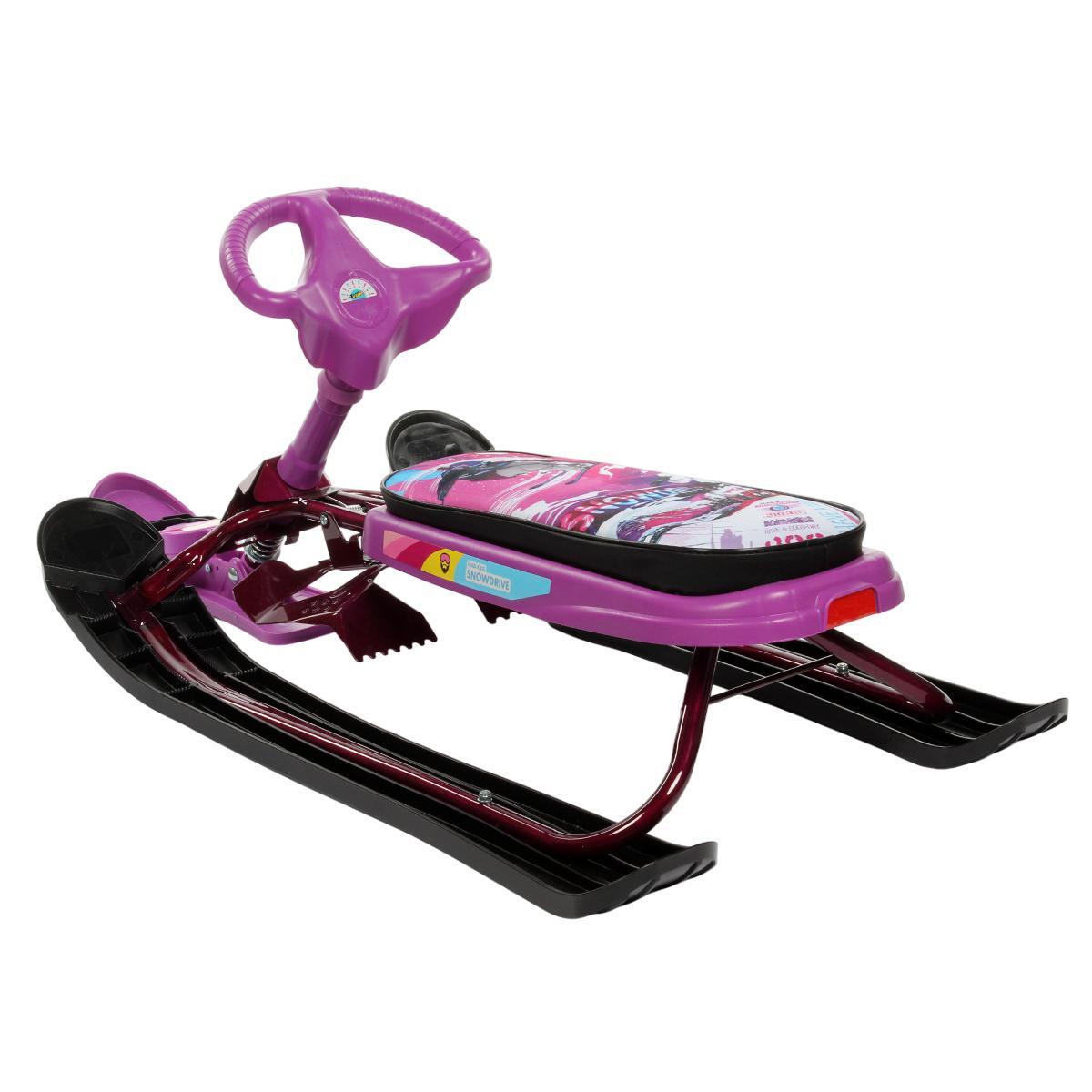 Снегокат предназначен для детей от 3 лет и оснащен удобным рулем, который позволяет легко управлять движением. Его прочный металлический каркас и пластиковые элементы обеспечивают надежность и долговечность. Сиденье с мягкой накладкой и спинкой гарантирует комфорт во время катания, а усиленный тормоз обеспечивает безопасность на обледенелых склонах.