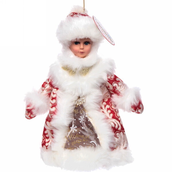 Снегурочка 35см, красная шуба, отделение для подарков, пластик/текстиль