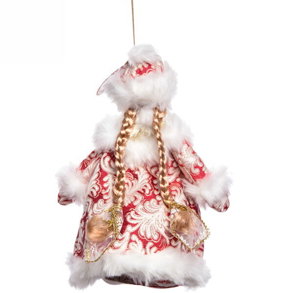 Высота фигурки составляет 35 см. Костюм выполнен в традиционных красно-белых тонах с элементами искусственного меха. Подходит для декора жилых помещений и офисов в новогодний период.