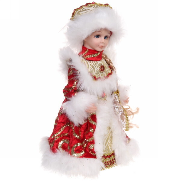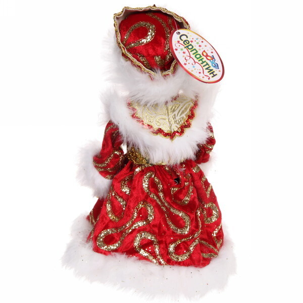 Эта музыкальная Снегурочка высотой 30 см станет ярким акцентом вашего новогоднего декора. Она выполнена в красно-золотых тонах и украшена белым мехом, что придаёт ей праздничный вид. Кукла не только радует глаз, но и наполняет атмосферу волшебством благодаря встроенной музыке. Подарите своим близким частичку новогоднего чуда!