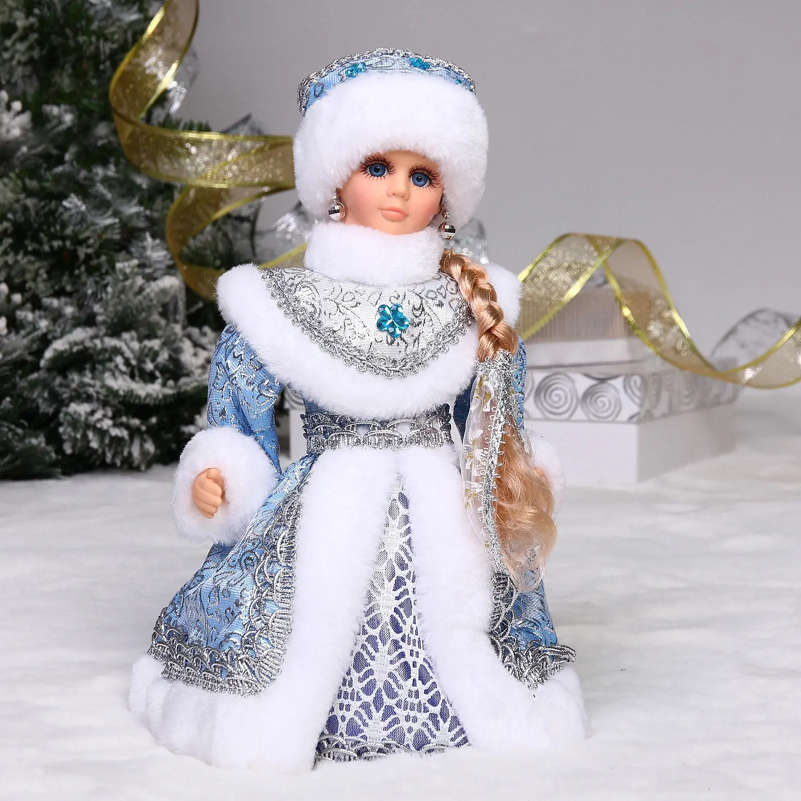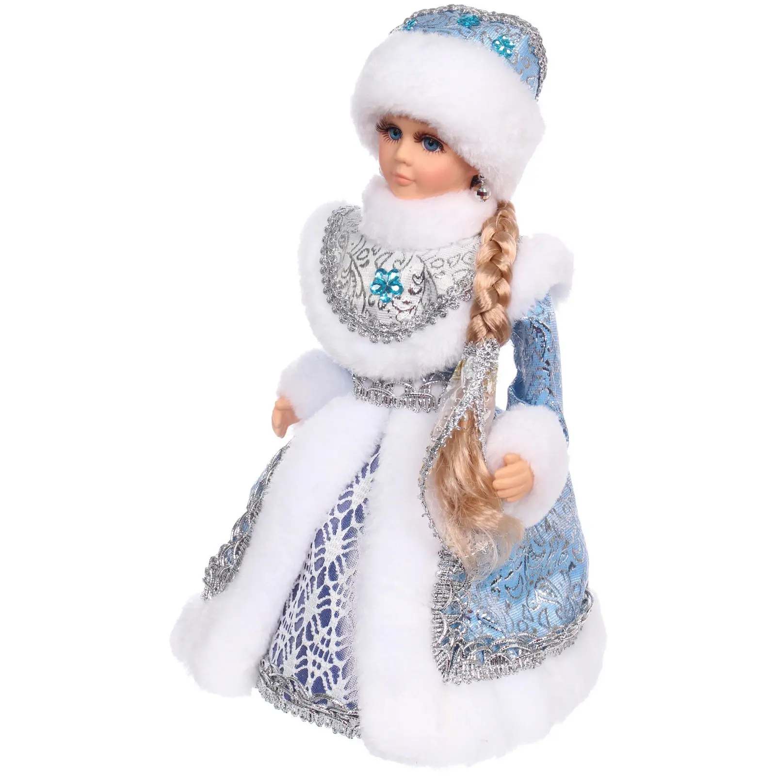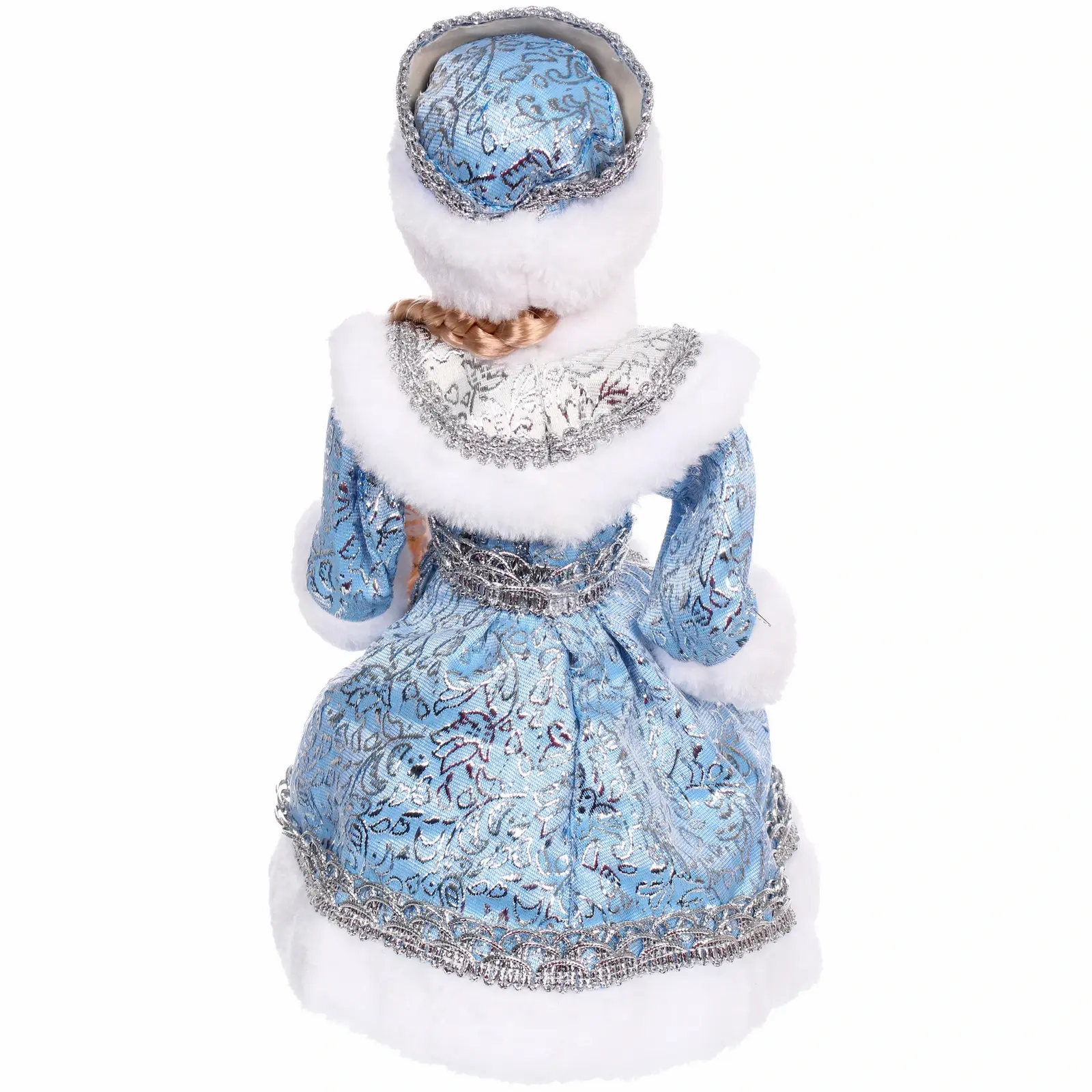 Подарите праздник каждому вечеру: музыкальная кукла Снегурочка из серии «новогодняя сказка» высотой 30 см. Голубой наряд с серебристым узором и белым искусственным мехом создают образ традиционной русской красавицы и добавляют волшебства в дом. Музыкальная вставка оживляет композицию, превращая обычный декор в незабываемую новогоднюю сцену.