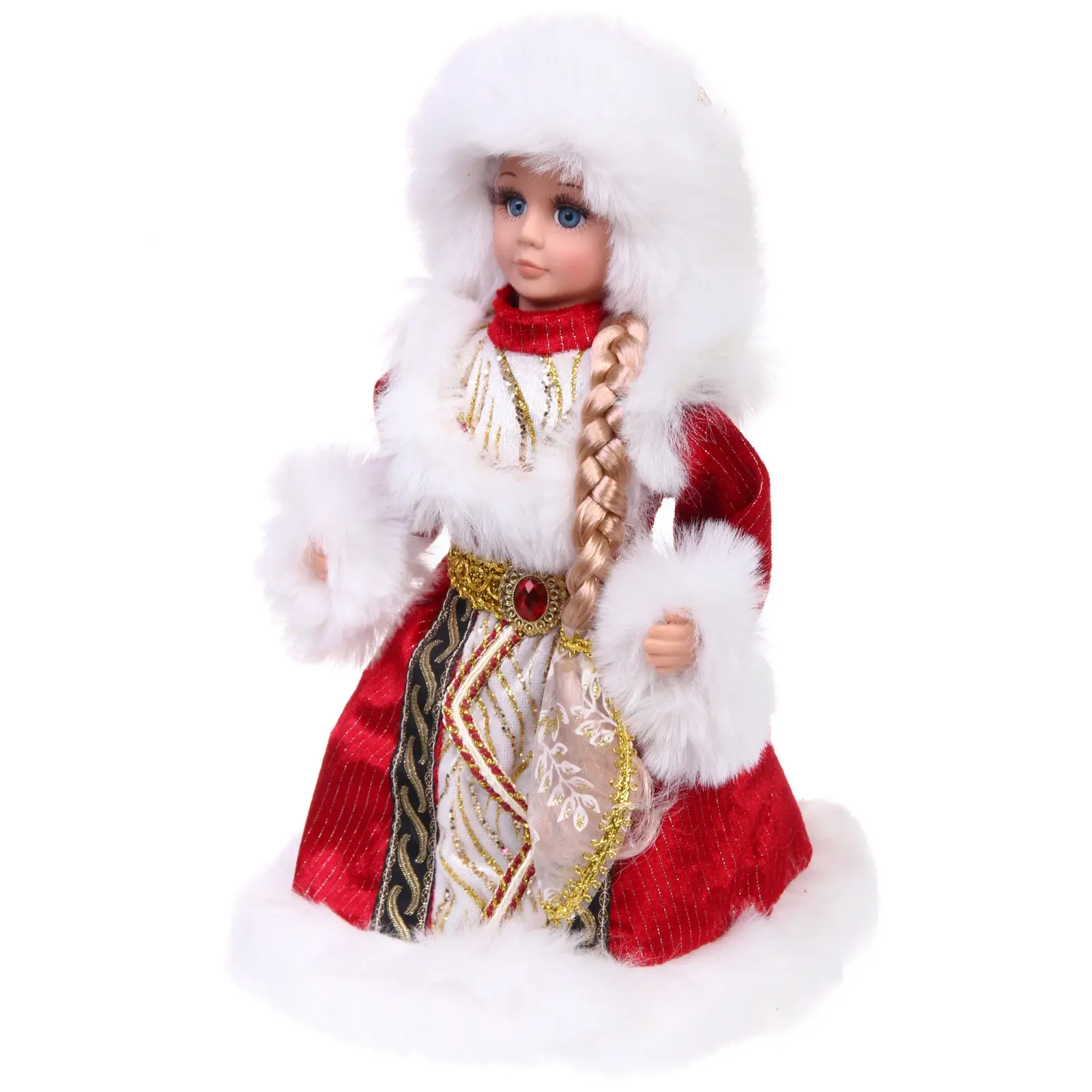 Снегурочка музыкальная "Сказка", 30см, красная шубка, пластик/текстиль