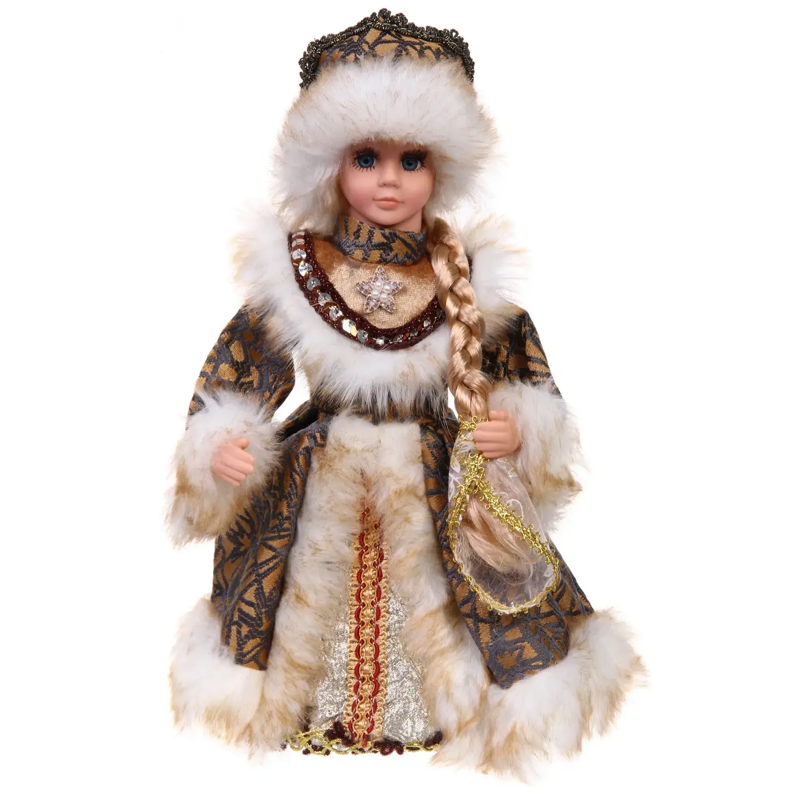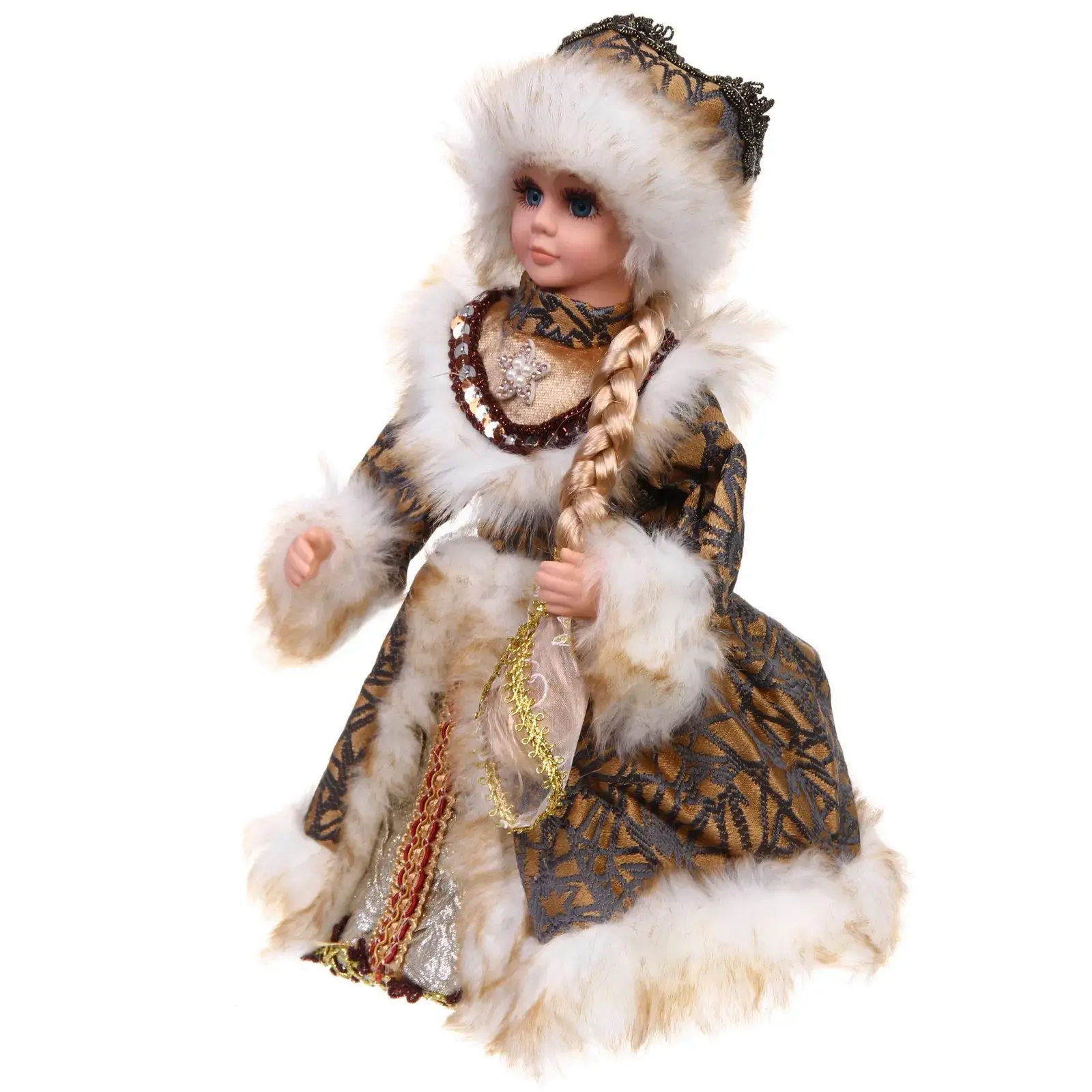 Снегурочка музыкальная 'Волшебный день', 30см, текстиль/пластик, бронзовая шубка с мехом