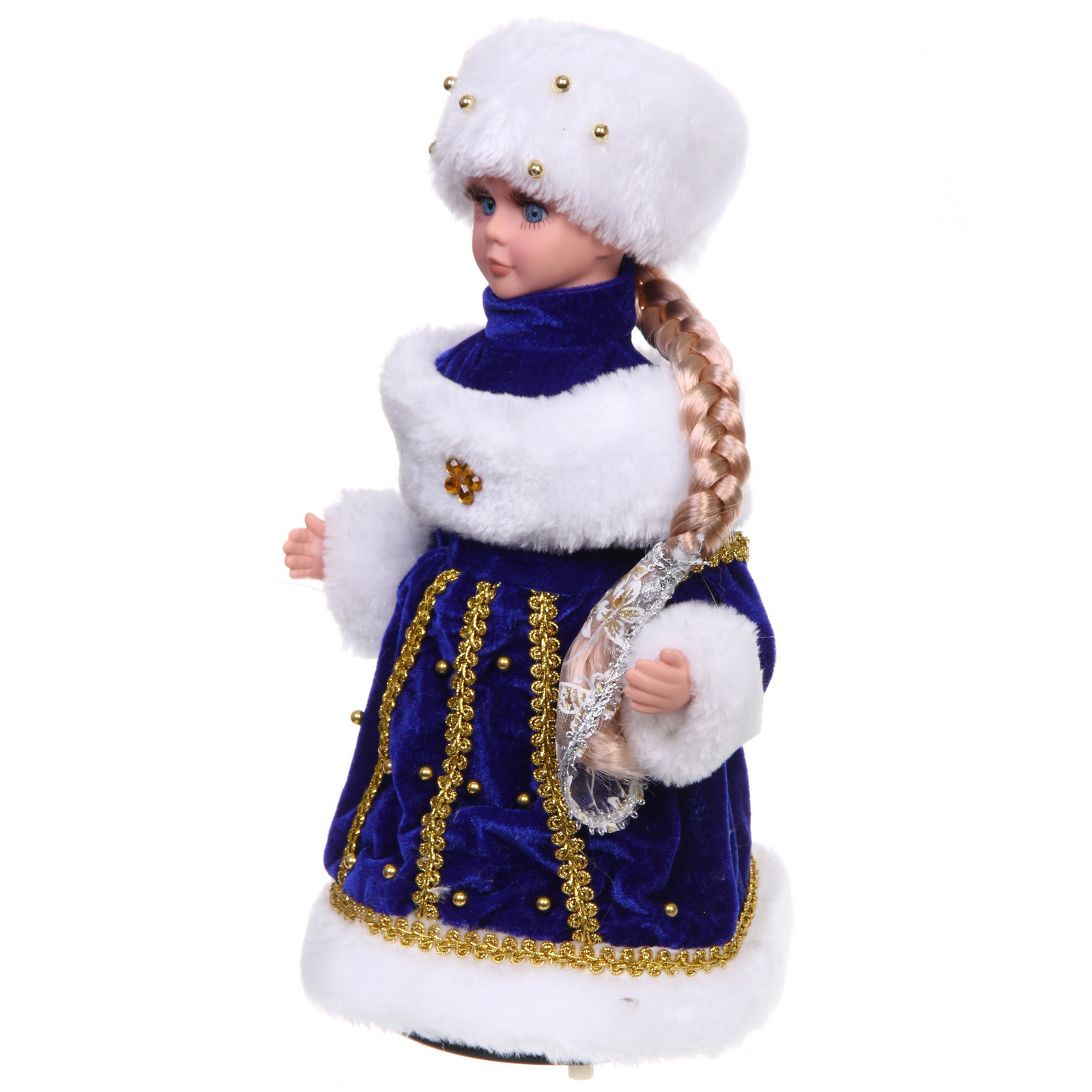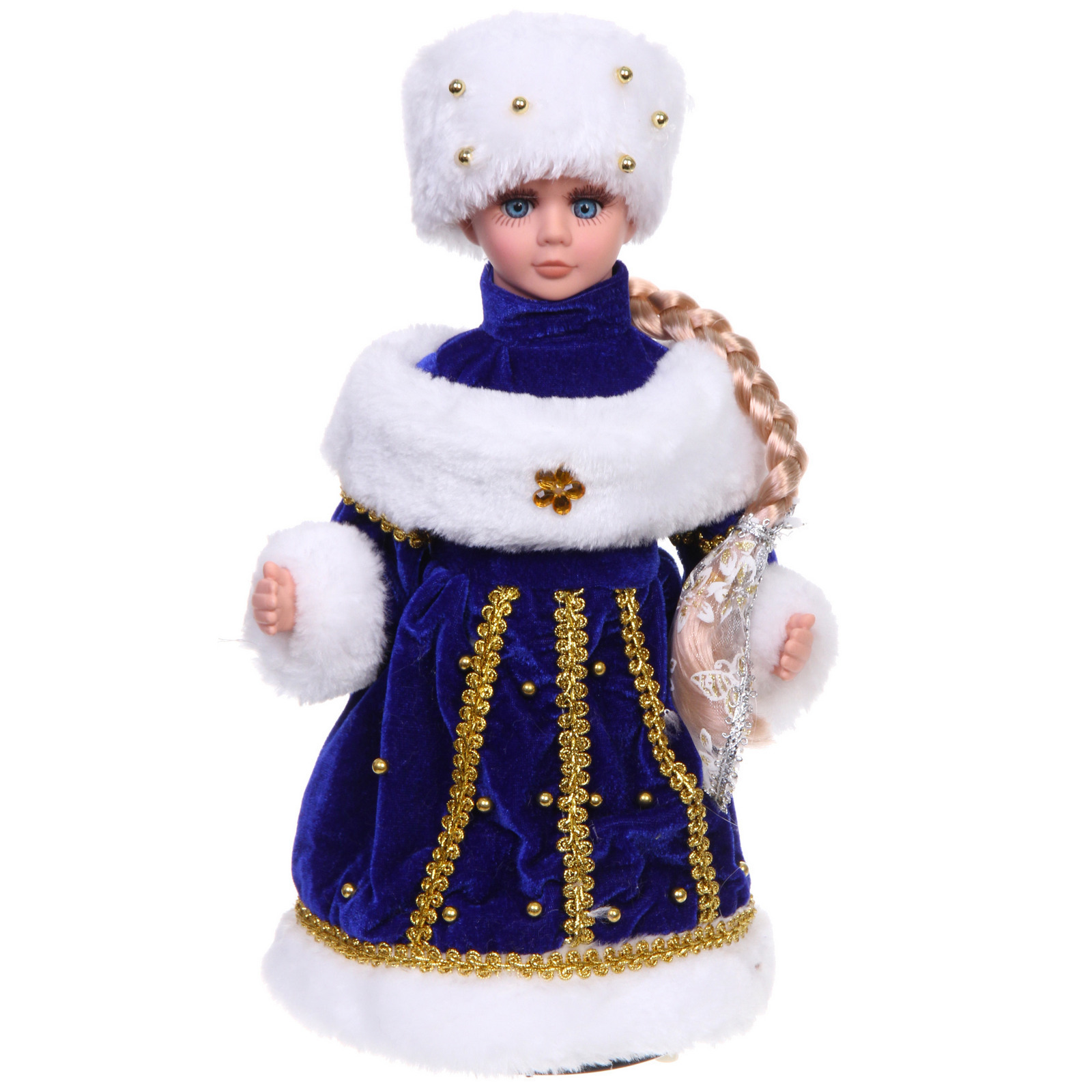 Погрузитесь в атмосферу зимних праздников с музыкальной куклой Снегурочка «Зимний хоровод». Эта очаровательная куколка высотой 30 см в синем бархатном платье с белыми меховыми вставками станет не только прекрасным украшением вашего дома, но и источником радости для детей. Музыкальная функция добавляет волшебства, создавая праздничное настроение в любое время года.