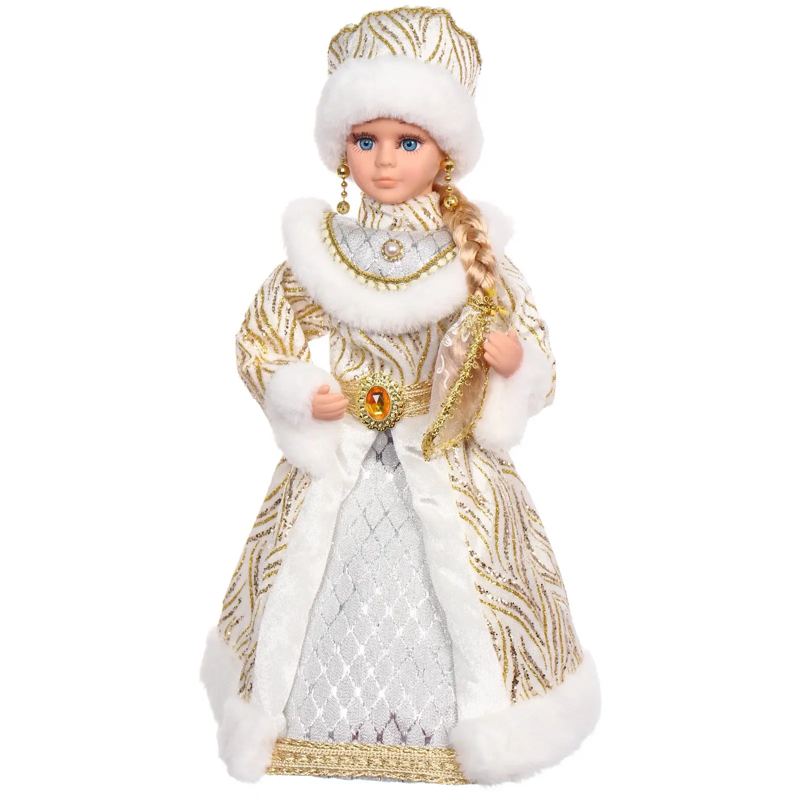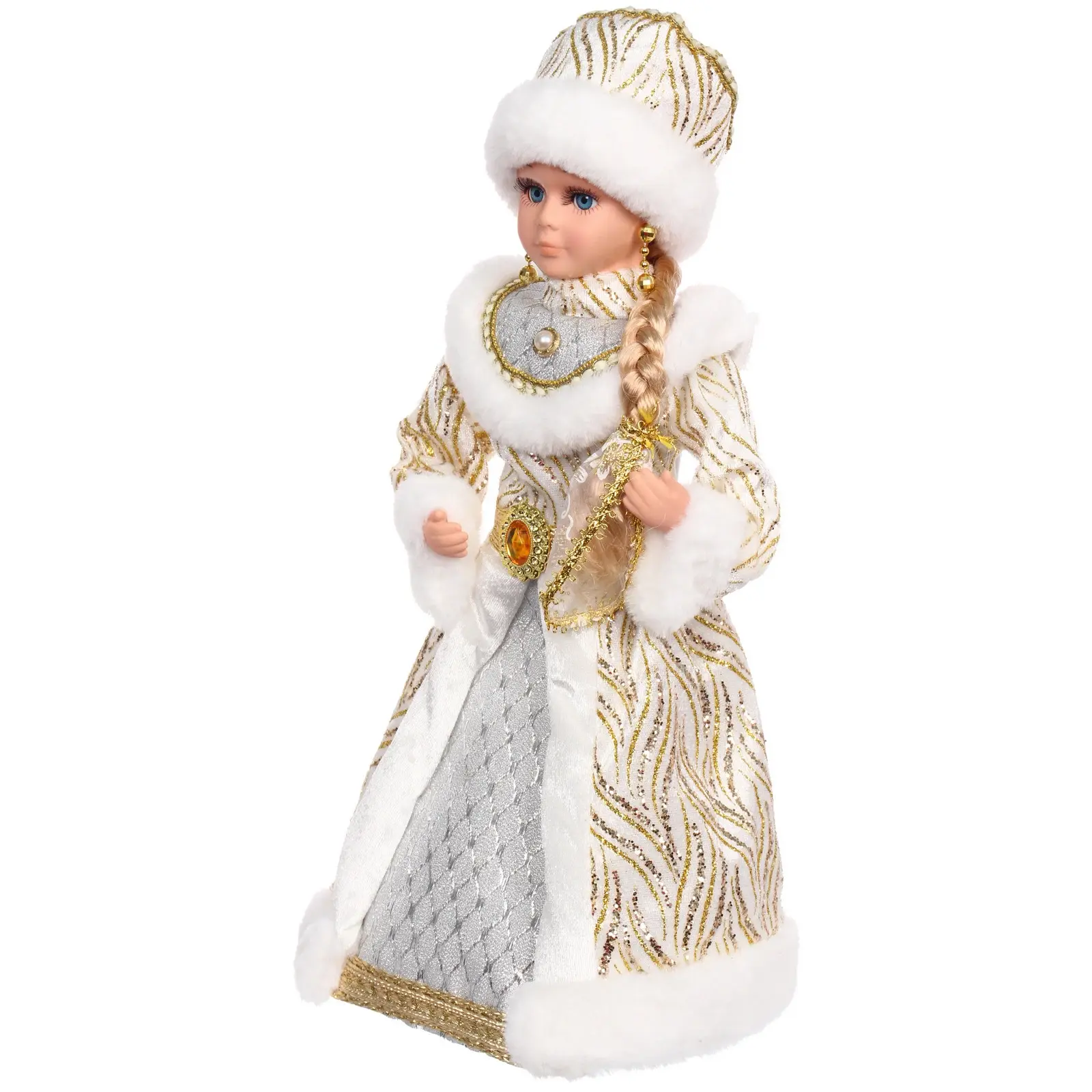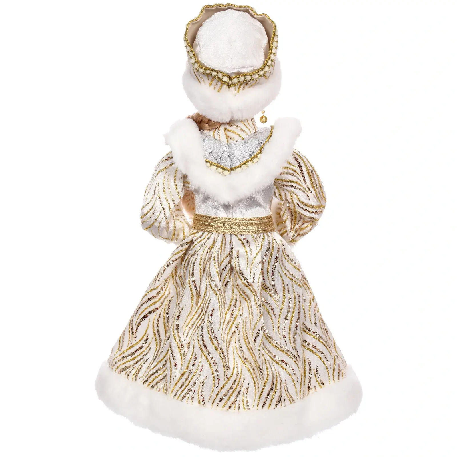 Высота фигурки — 40 см. Выполнена из качественного текстиля, пластика и декоративных металлических элементов, покрытых золотой отделкой. Одежда украшена белым искусственным мехом и серебряным сетчатым узором, придающим лёгкость образу.