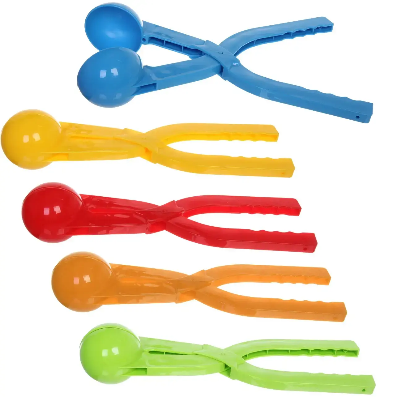 Просто зачерпните снег специальными ложками-захватами и сожмите ручки. Механизм автоматически сформирует идеально круглый снежок.