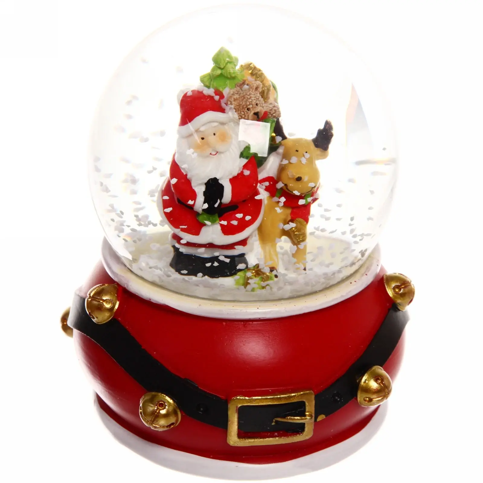 Этот изысканный снежный шар диаметром 14 см станет настоящим украшением вашего дома и идеальным подарком для близких в преддверии Нового года. Он перенесет вас в уютный зимний мирок, где Санта-Клаус и его верные олени готовы к праздничным путешествиям. Шарик выполнен из прочных материалов – полистоуна и стекла, что гарантирует его долговечность и привлекательный внешний вид.