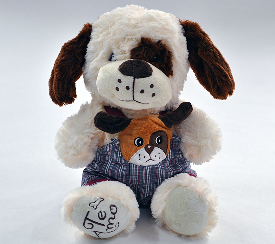 Особенность модели — маленькая собака-марионетка, аккуратно вшитая в рубашку основной игрушки. Это делает изделие более интересным для сюжетных игр, развивает воображение и позволяет разыгрывать мини-спектакли. Такой формат особенно нравится детям, которые любят придумывать истории и наделять игрушки характером.
