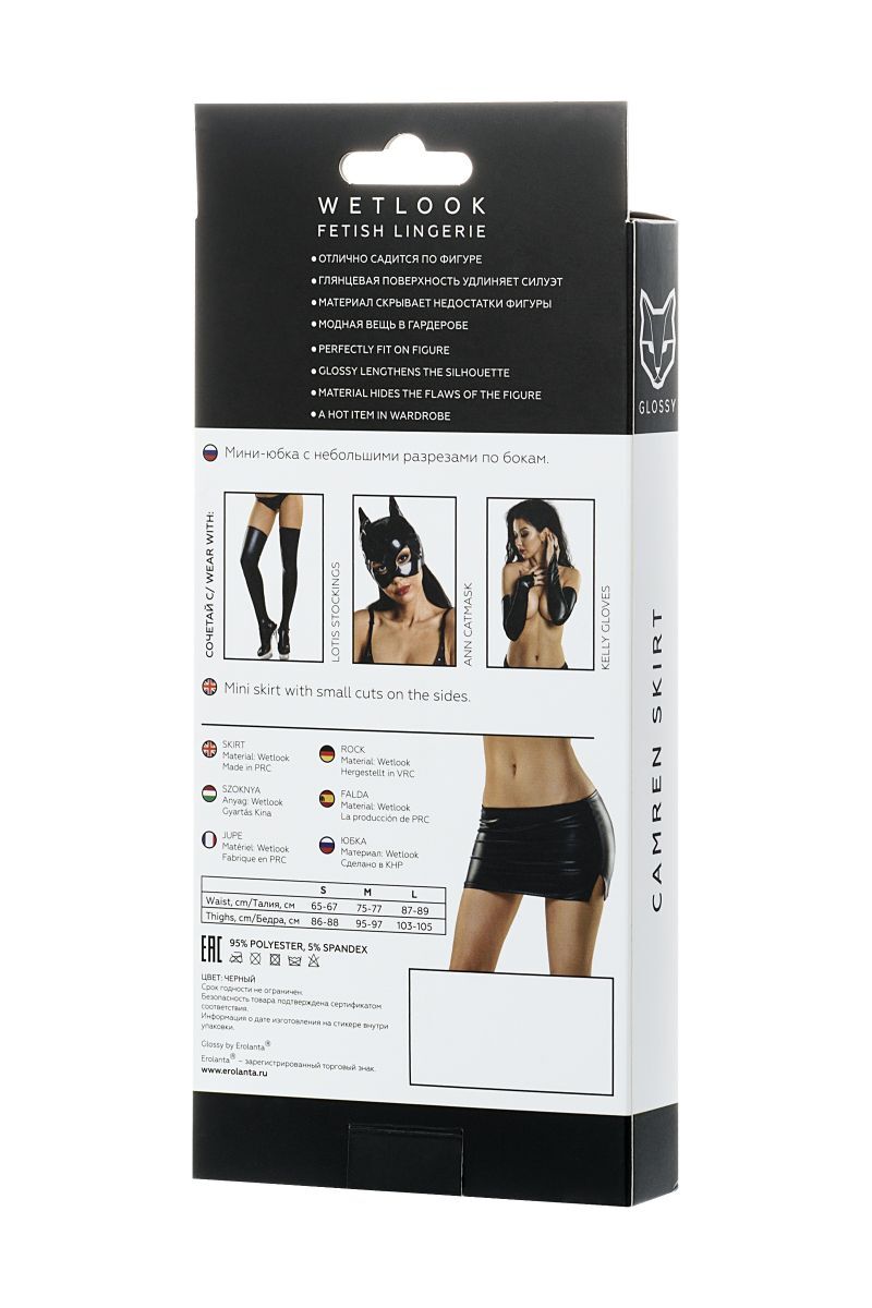 Мини-юбка 'Camren', размер S, черная, эффект 'wet-look', материал полиэстер/спандекс