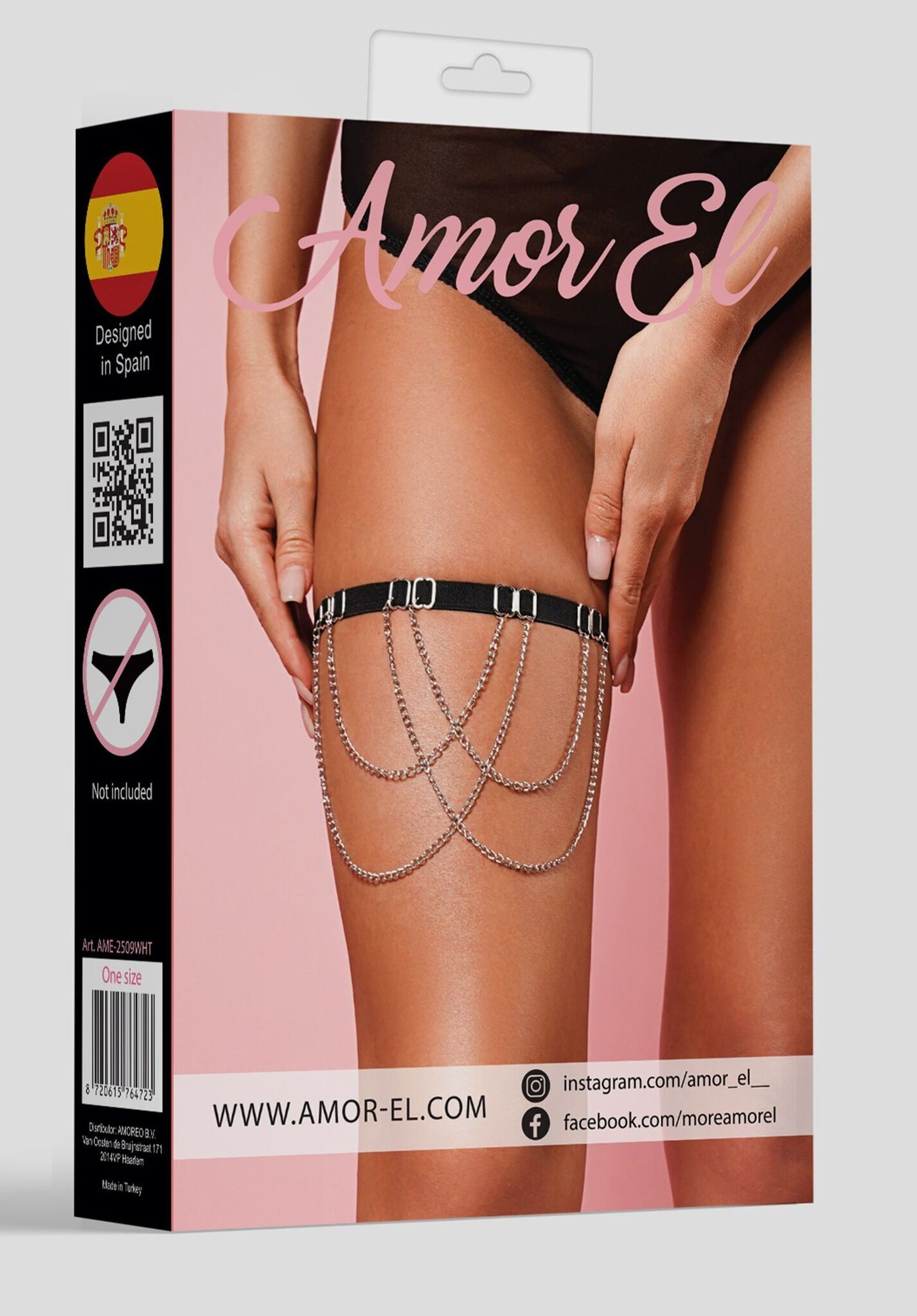 Эротичная подвязка Amor El сочетает изысканный дизайн и практичность. Регулируемая резинка с металлическими элементами обеспечивает идеальную посадку, а ниспадающие цепочки создают эффектный акцент, подчеркивающий вашу индивидуальность.