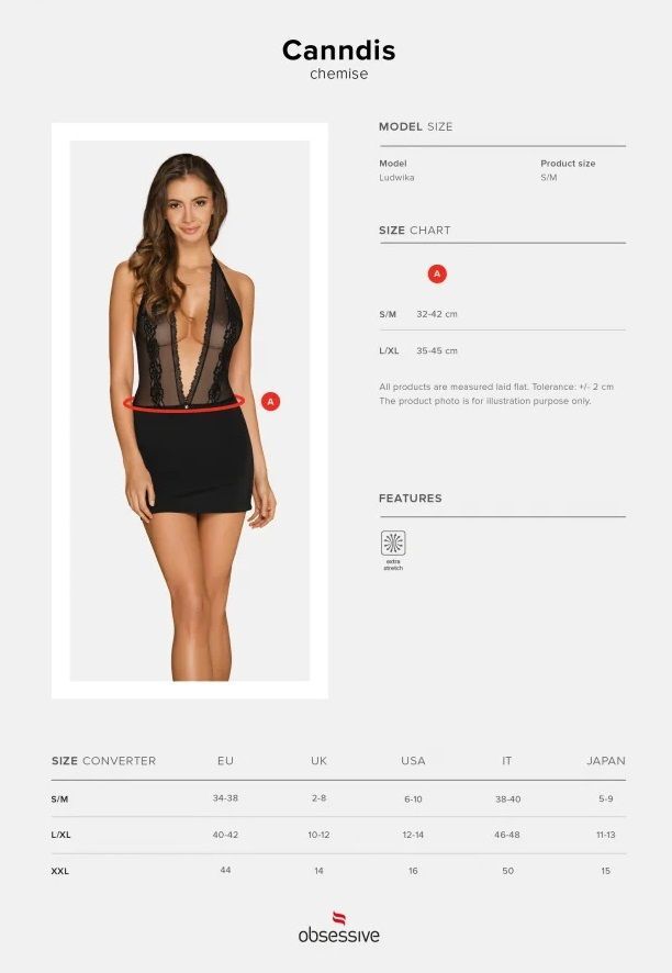 Сорочка Canndis идеально подходит для особых случаев, романтических встреч или просто для того, чтобы порадовать себя. Она легко комбинируется с различными аксессуарами и обувью, позволяя вам создать уникальный образ. В комплект входят однотонные черные трусики-стринги, что делает этот набор еще более привлекательным.