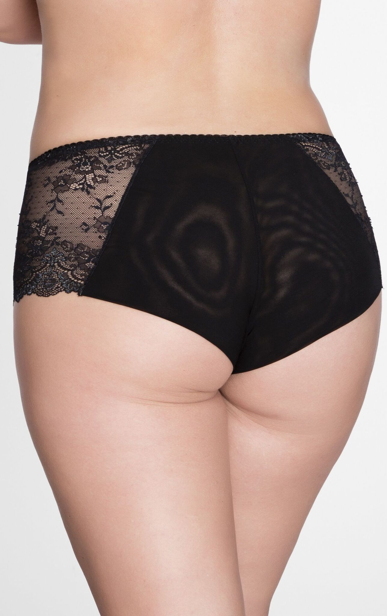 Трусики-бразилиана с кружевными боками, высокая посадка, черные — комфорт и эластичность, размер XXL