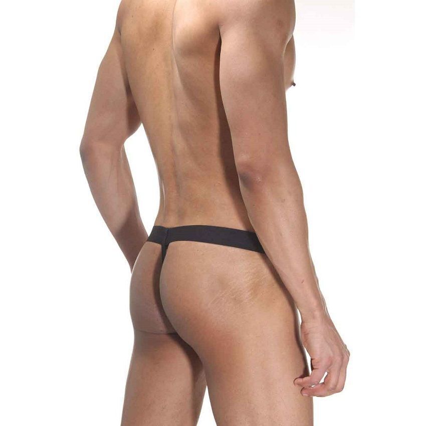 Трусы-стринги мужские с леопардовым принтом, черные, широкая резинка, размер L-XL, полиэстер/эластан