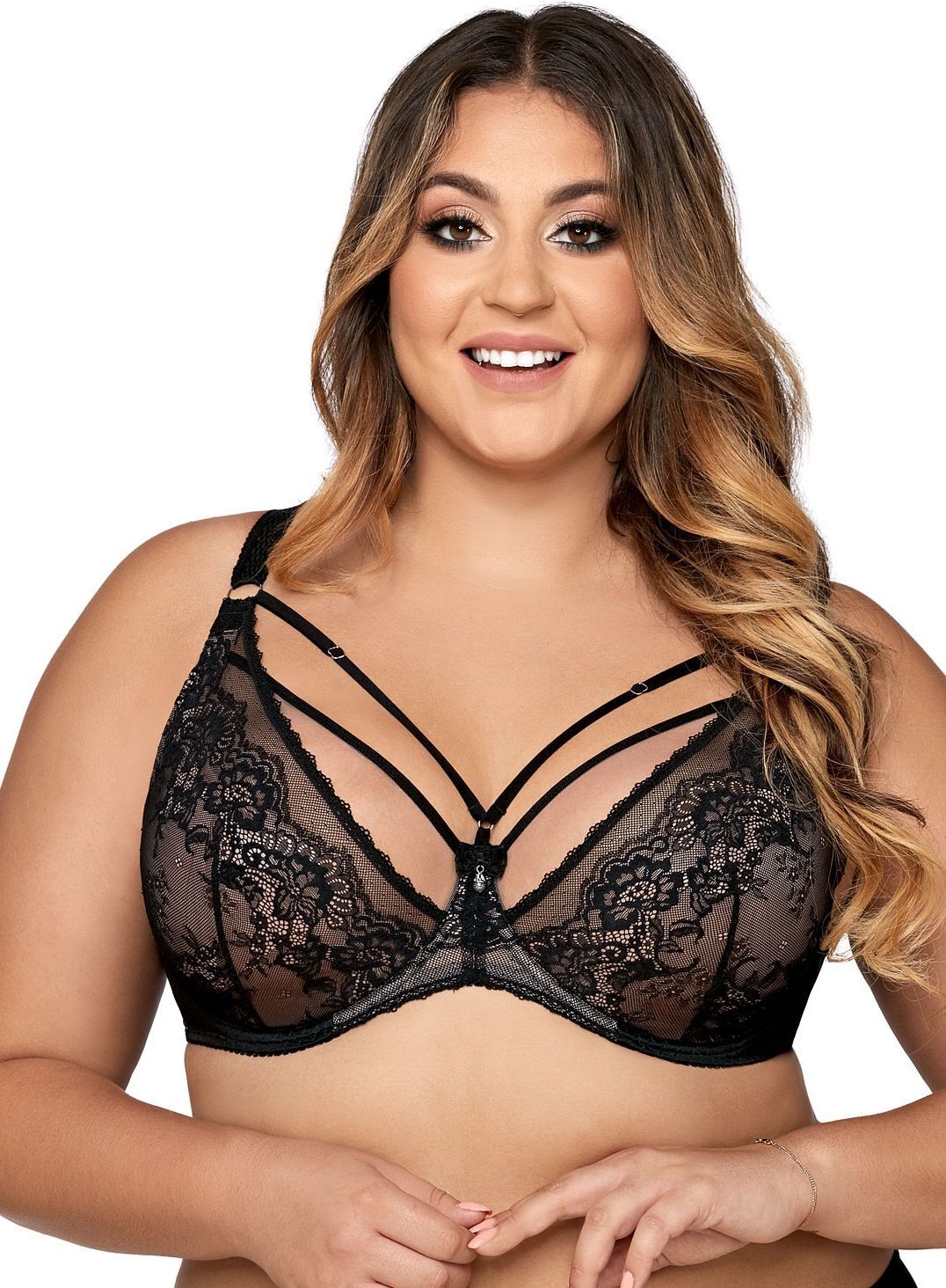 Мягкие чашки на косточках обеспечивают идеальную посадку, а декоративные бретели добавляют изюминку в дизайн. Застёжка на спине с удлинителем позволяет настроить идеальную посадку.