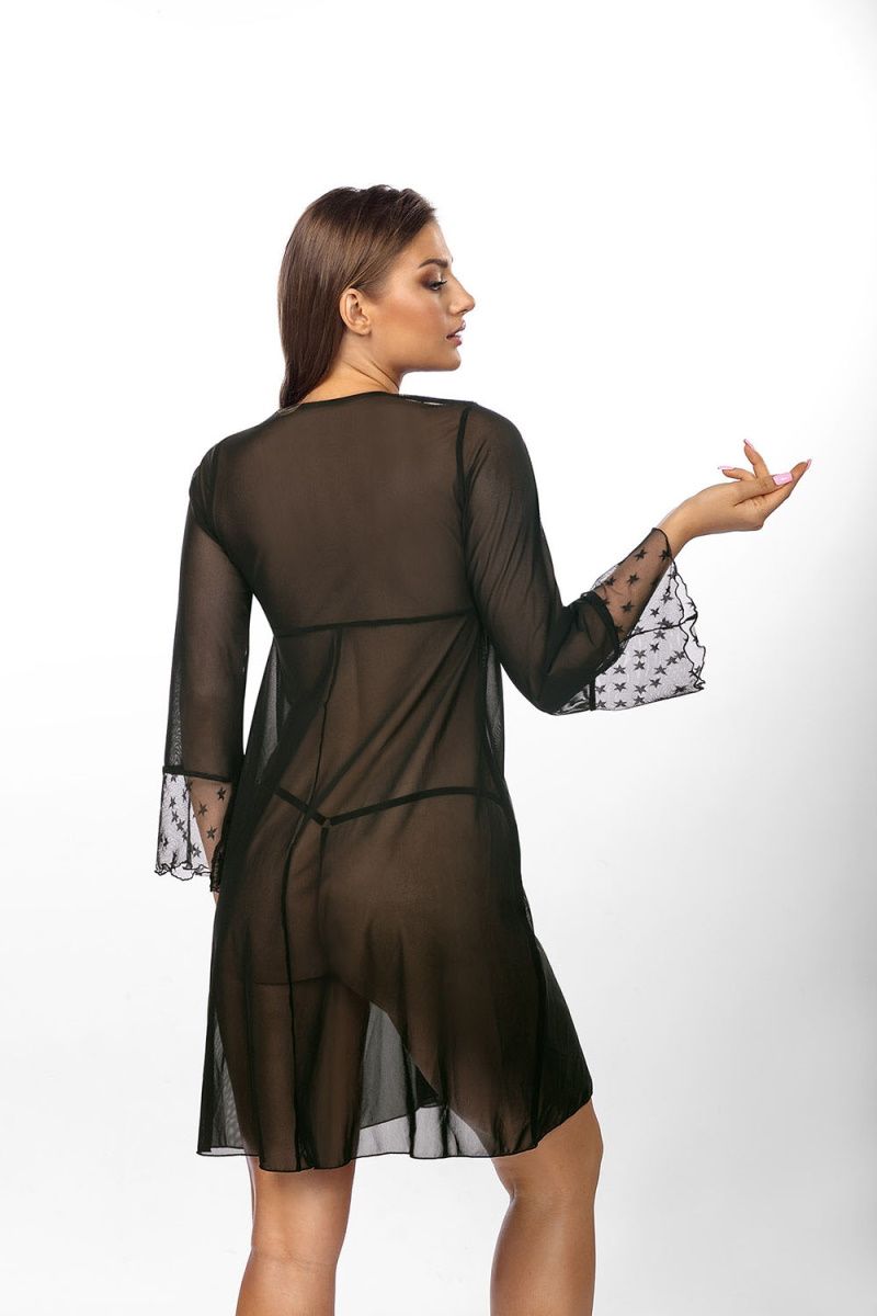 Пеньюар полупрозрачный сетчатый с трусиками-стрингами, черный, размер L-XL, материал: 80% полиамид, 20% эластан